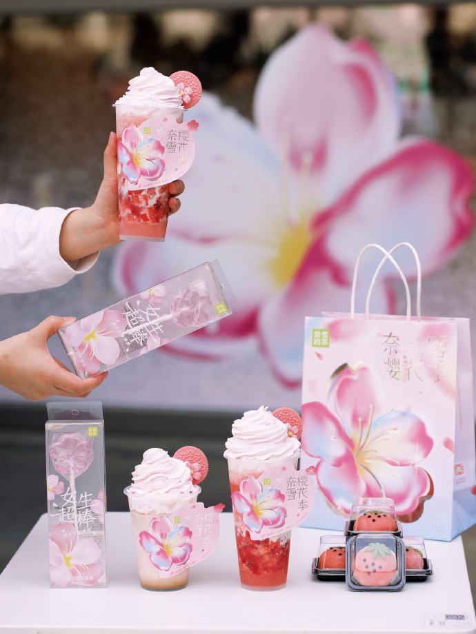 社交平台上,网友纷纷晒出赏花攻略。而品牌也没闲着,各类樱花限量产品纷纷来袭,以色香味俱全,将消费者全方位包围。