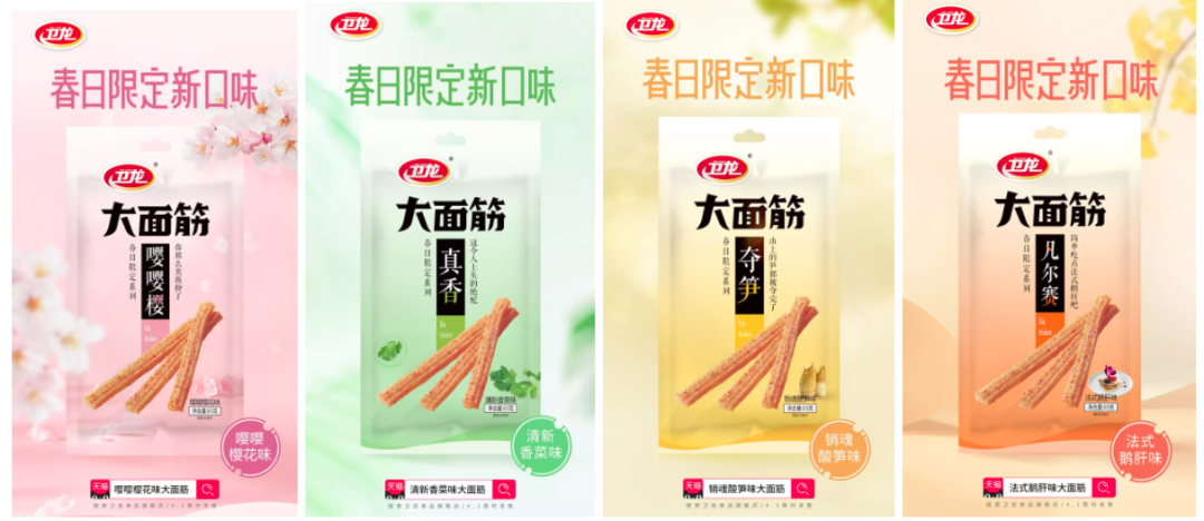 卫龙就曾在微博宣布“春日限定新口味”:嘤嘤樱花味、清新香菜味、销魂酸笋味、法式鹅肝味。小编觉得,这些口味倒也可以做出来让大伙儿试试?