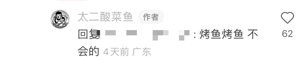 太二回复网友:烤鱼,不会(腥)的