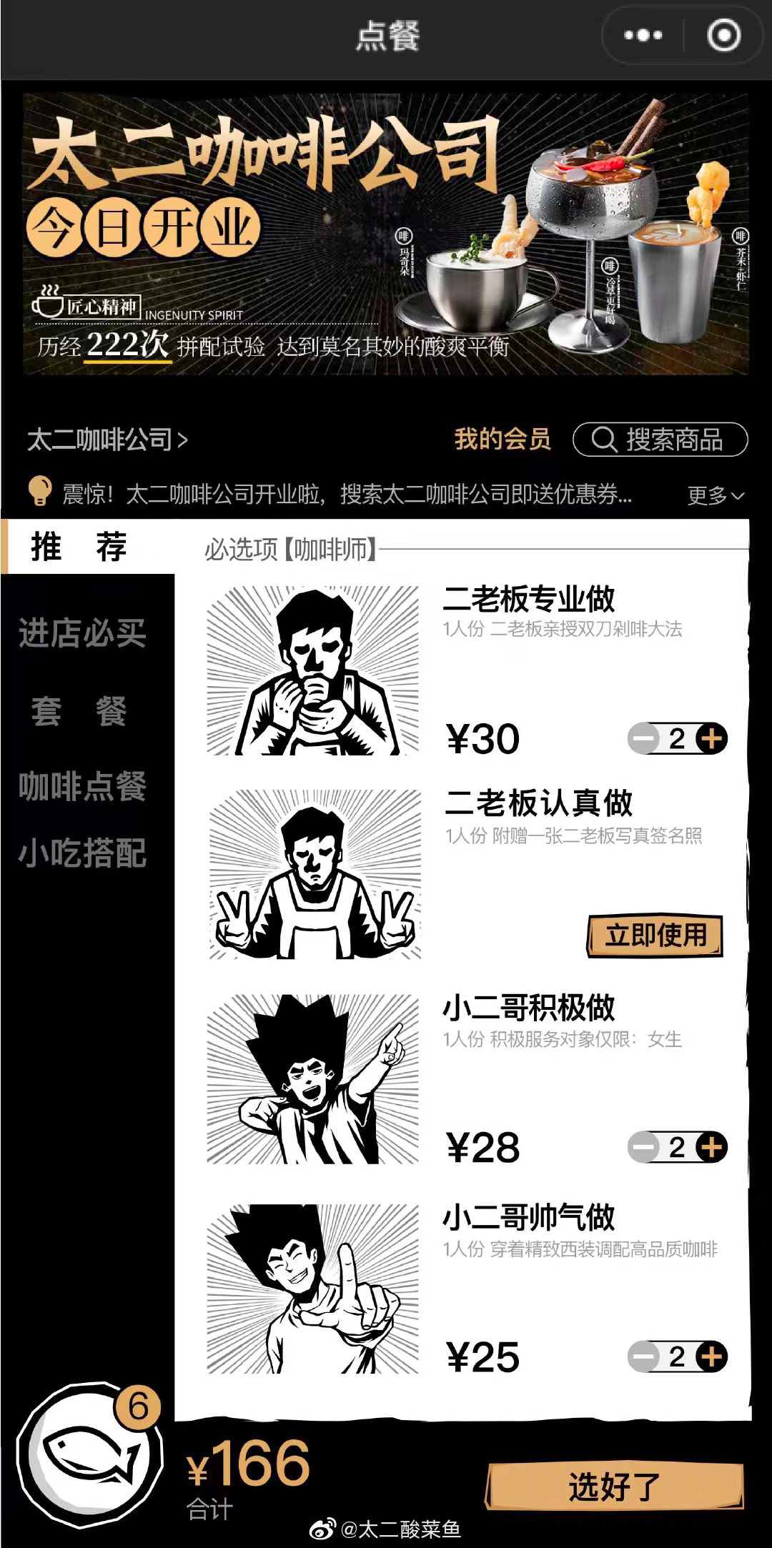 一同“上线”的还有太二咖啡公司外卖小程序。