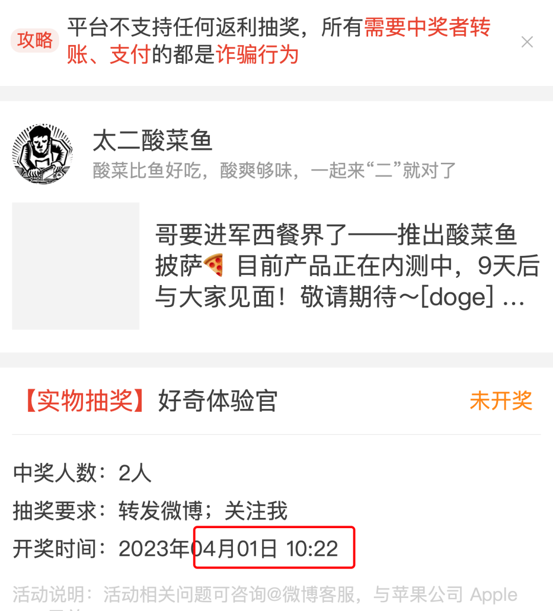 小编点开微博抽奖详情,果然,开奖日期是4月1日