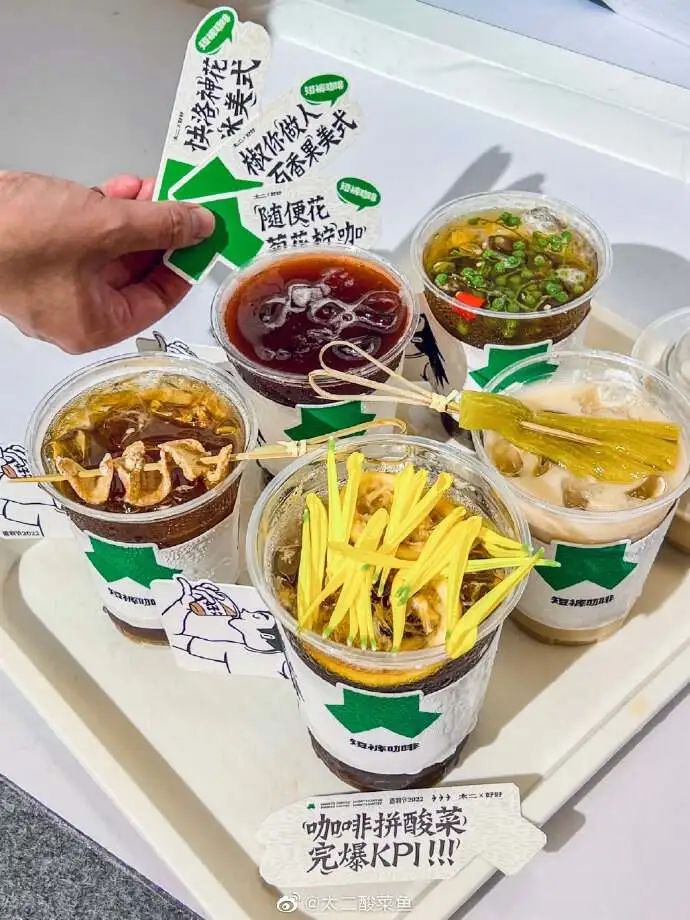 而到了2022年,太二宣布成立酸菜咖啡公司,又是熟悉的中西合并~