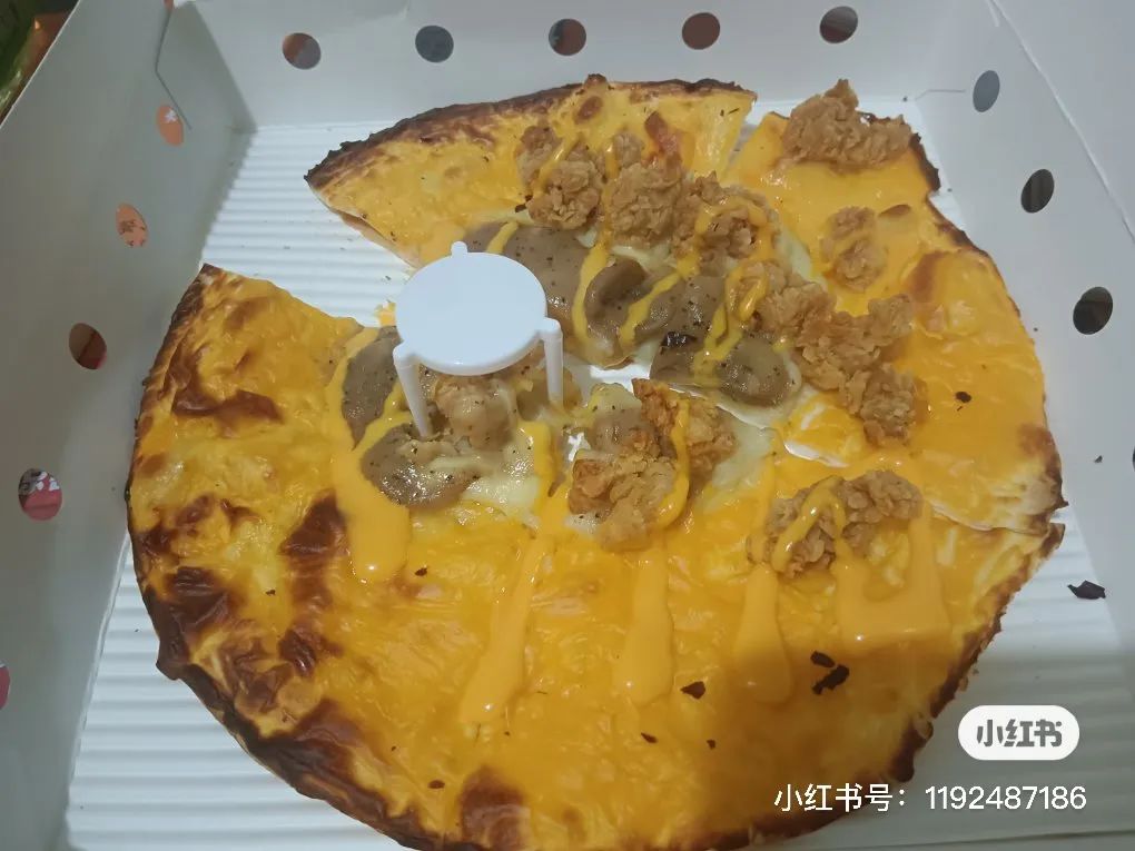 不得不说,就图片来看,炸鸡与披萨的结合,肉真多