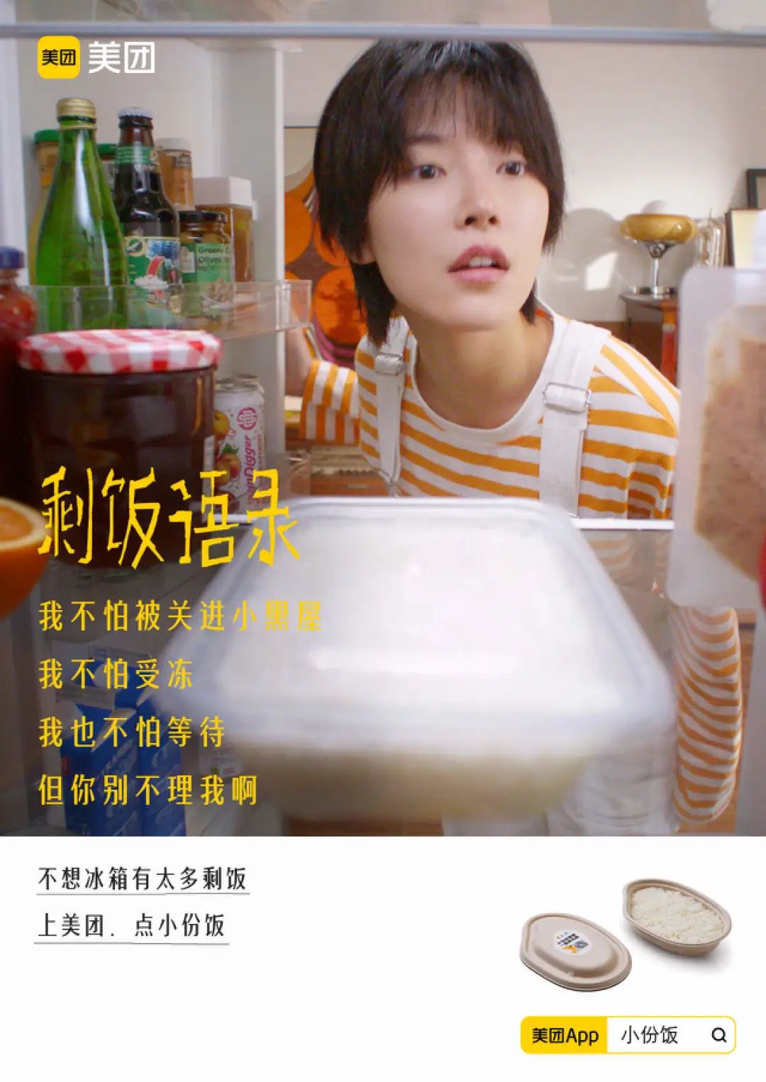 节约粮食的做法本身就很讨喜。广告片和人物海报从剩饭的视角看人,没有说教和规训,简简单单就让人们意识到剩饭问题的存在。