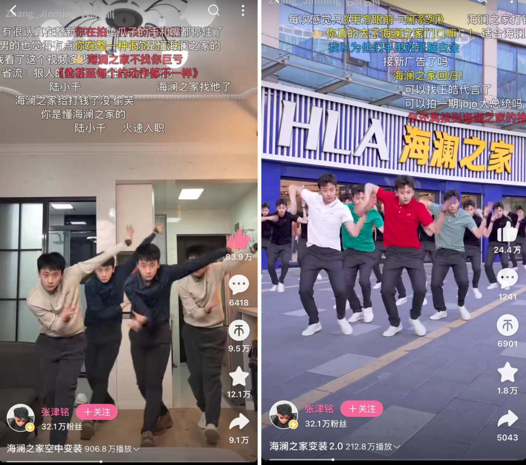 品牌代言人印小天的土嗨舞蹈,还有叶茂中的经典广告语“男人一年逛两次海澜之家,每次都有新选择”,现在仍不时被网友拿出来翻新。