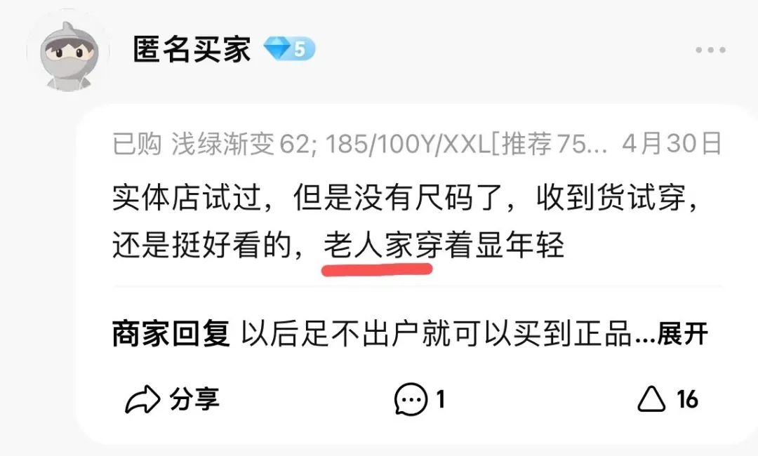 玩梗之余,网友对这一个国货品牌似乎也抱着“恨铁不成钢”的态度:版型、质量都不错,但就是怎么穿都显老……