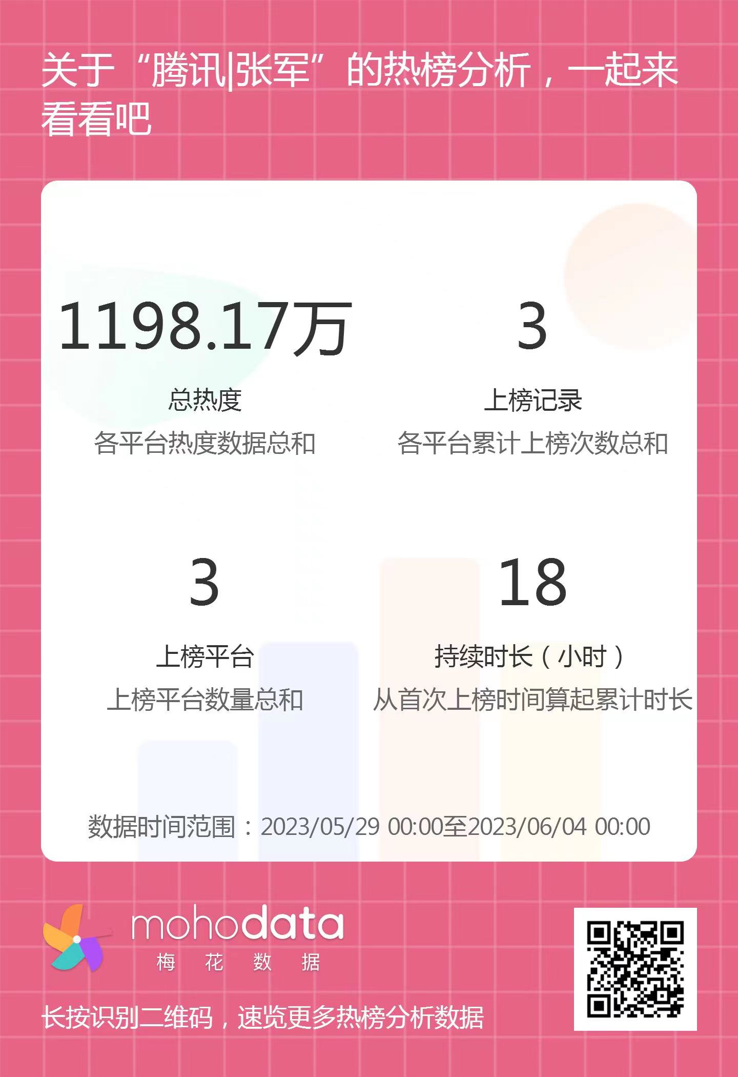 热搜方面,腾讯事件相关热搜热度总计1198.17万,上榜记录3次,上榜平台3家,持续时长18小时。详情可扫描以下二维码查看。
