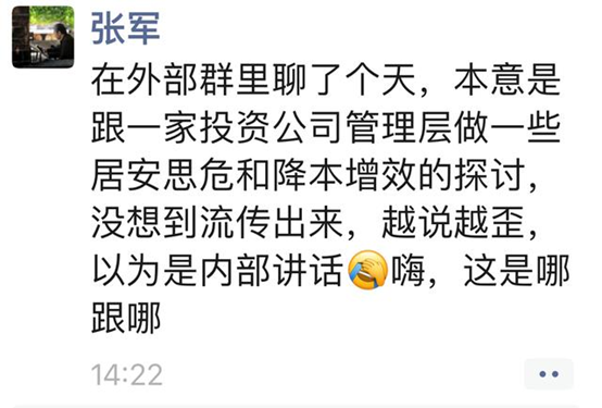 对于马化腾的这番表态,腾讯公关总监张军在朋友圈中回应,这是马化腾在外部群里聊了个天,本意是跟一家投资公司管理层做一些居安思危和降本增效的探讨,不是马化腾在腾讯的内部讲话。
