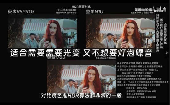 尽管视频内容还算翔实,UP主也没有体现出明显的倾向。但是在视频的最后,UP主给出自己的结论:“极米的对比度、色准、HDR算法都非常的一般”。