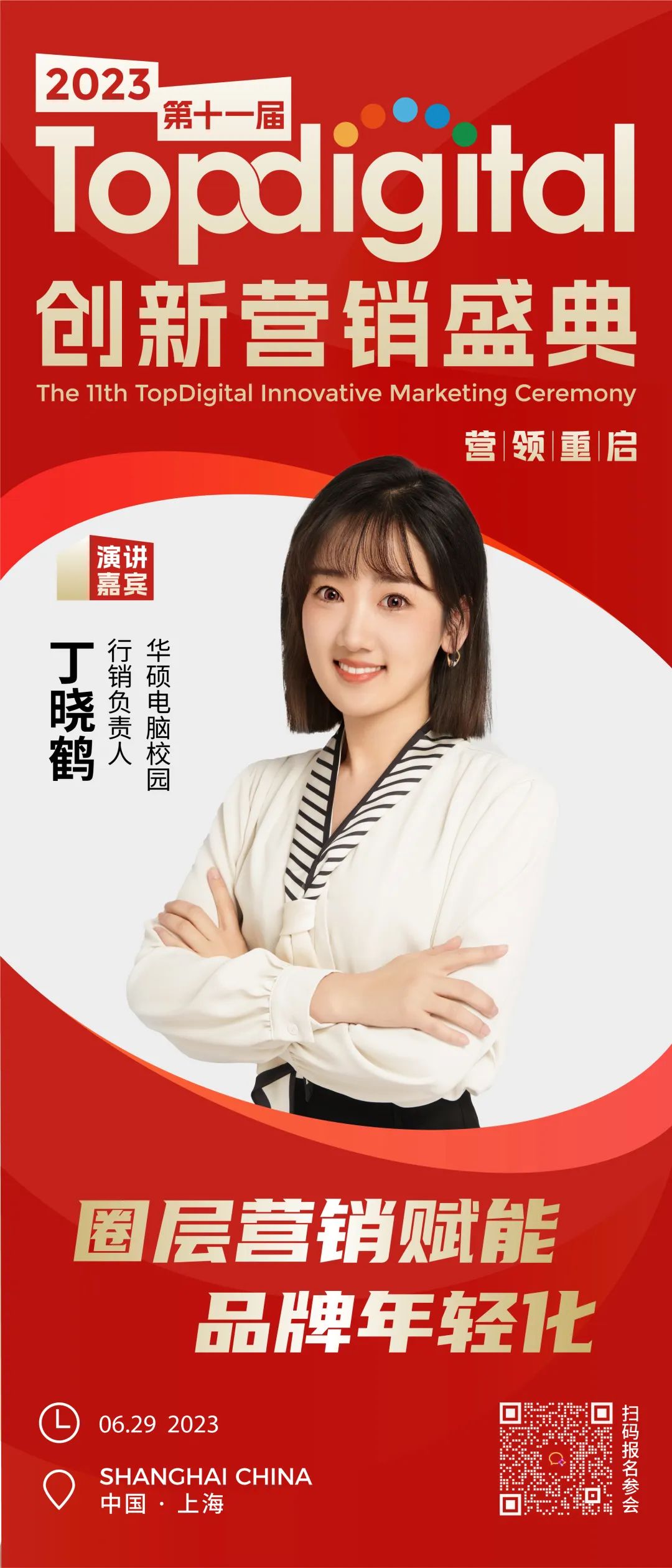 丁晓鹤女士,现任华硕电脑校园行销负责人。丁晓鹤认为,品牌年轻化不是一味迎合年轻人,也不是单纯的年轻元素堆砌,而是要从“术”上升到“道”的高度,用品牌从战略层面去思考品牌年轻化路径。丁晓鹤女士将在本次营销盛典中,发表题为《圈层营销赋能品牌年轻化》的主题演讲。
