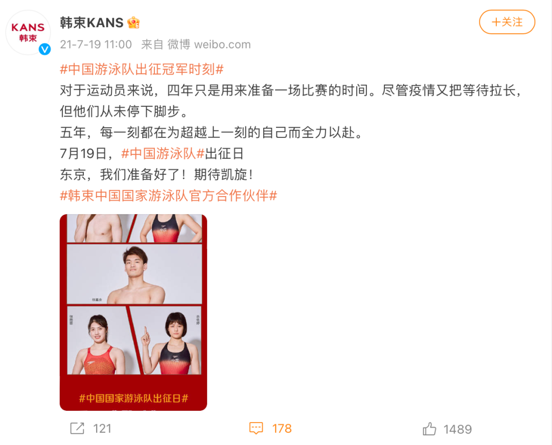 历史总是惊人的相似,两年前的夏天,韩束宣布与吴亦凡方终止品牌合作关系后,次日扭头官宣与中国游泳队的合作。紧接着,韩束上线广告片《每一刻冠军》和一款情绪小胶囊面膜,为游泳健儿们出征东京奥运会加油打气。
