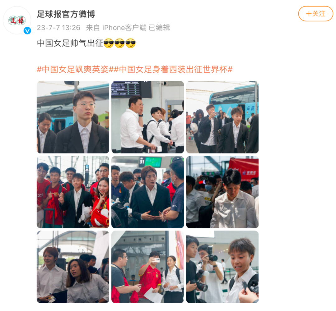 一切似乎有迹可循。三天前,在中国女足出征世界杯的机场图中,她们统一穿着了黑西装、白衬衫。不过,直到Prada官宣前,大部分网友都不知道原来她们穿的是合作方的服饰。