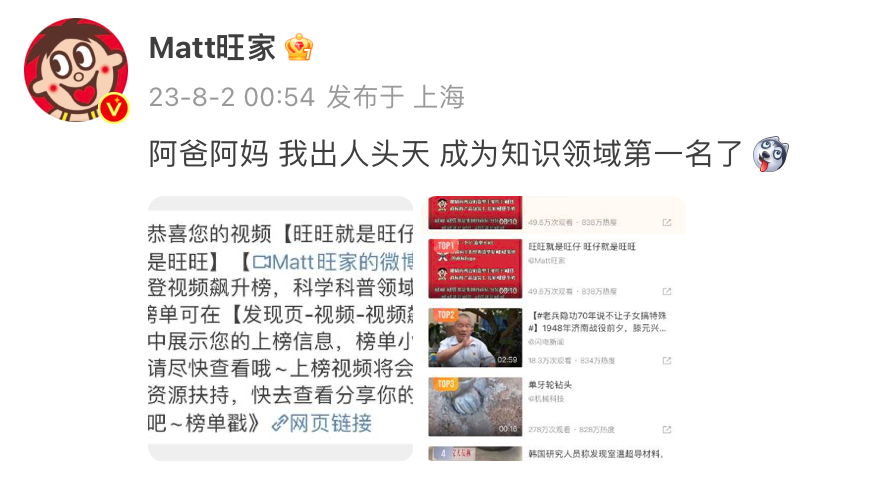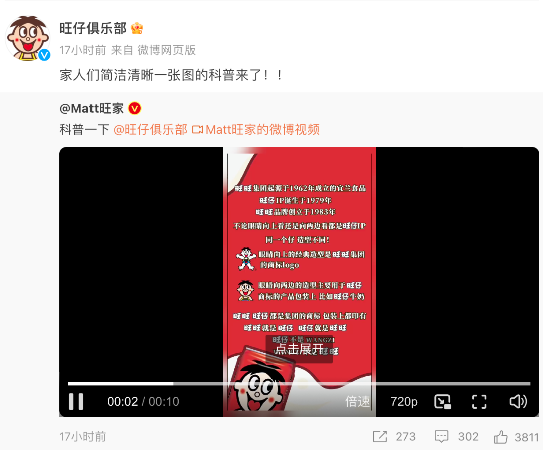 随后,旺仔集团二公子本人@Matt旺家 发了个视频科普。说是视频,实际上是配乐版jpg啦~
