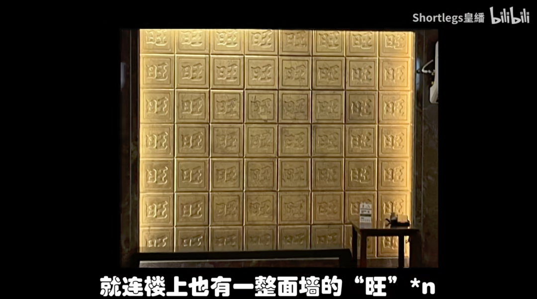 up主@Shortlegs皇繙 前往体验神旺大酒店,发现电梯里和墙上有好多“旺”。