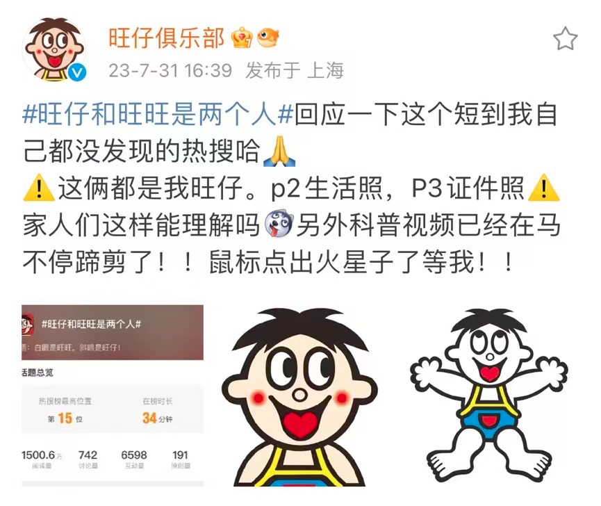 最近,有不少大V惊讶地表示,原来旺仔和旺旺是两个人。