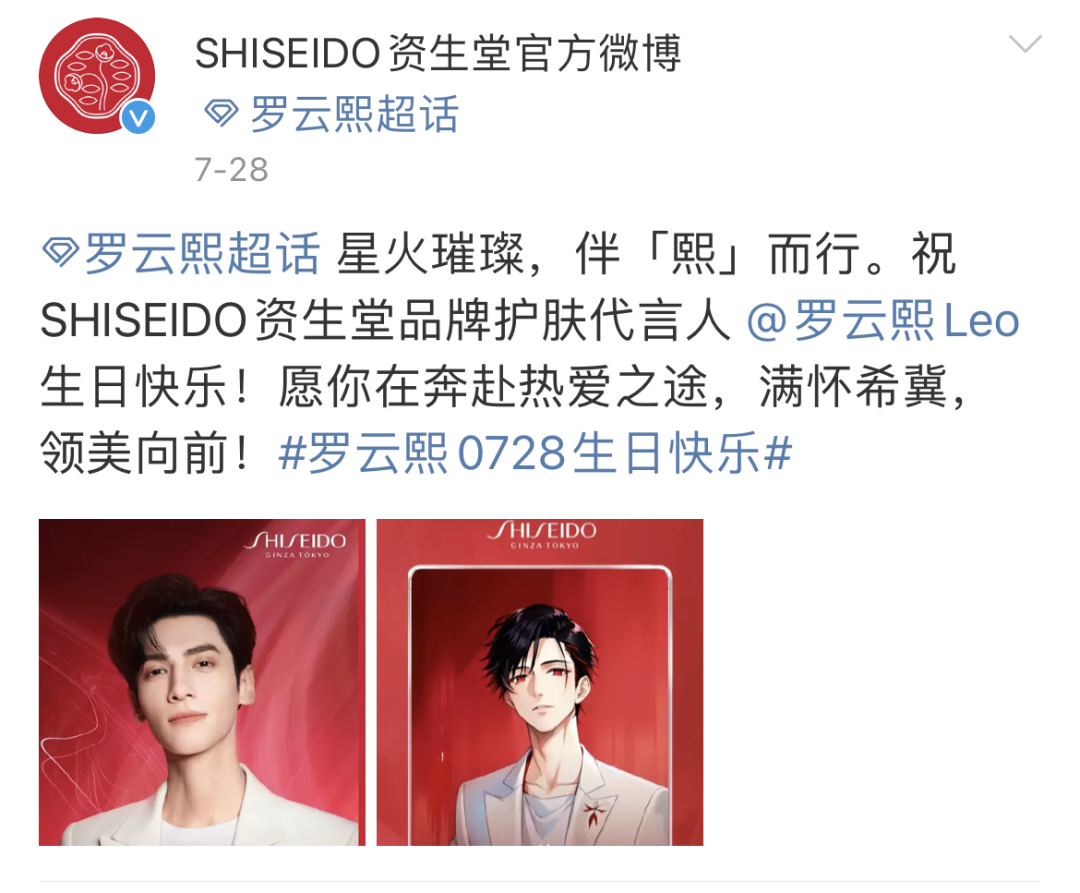 无独有偶,因扮演澹台烬一角而出圈的罗云熙,也成功拿下资生堂护肤、高姿防晒等代言。