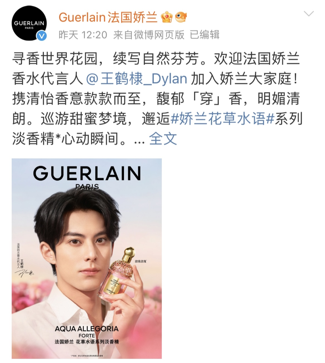 就在魏大勋官宣TF合作之时,王鹤棣代言娇兰香水的消息冲上热搜榜。后者凭借网络热播剧《苍兰诀》中东方青苍一角收获关注,目前王鹤棣身上已有美宝莲、雅诗兰黛等多家美妆类品牌代言。