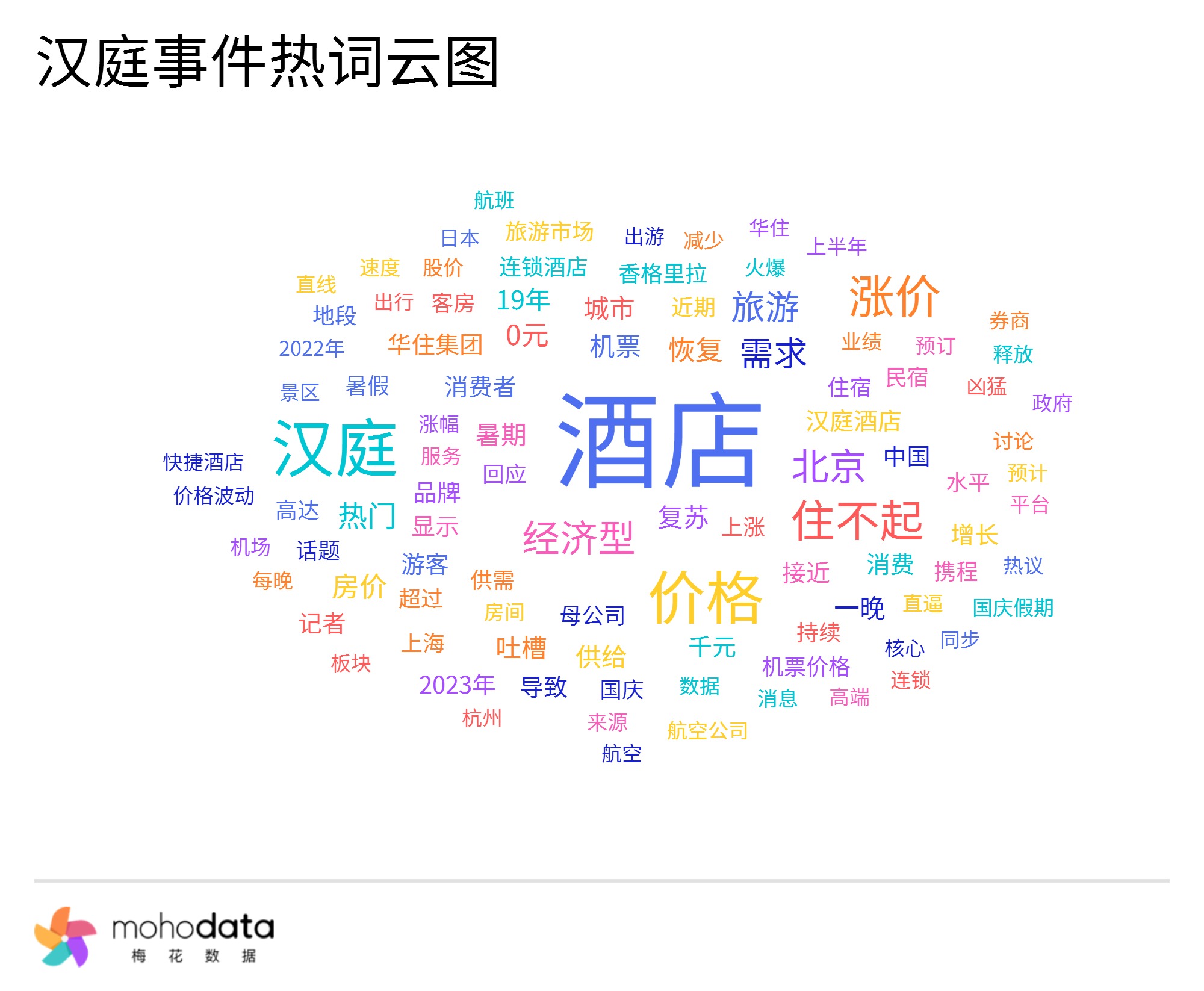 声量热词方面,热词云图如下所示,其中“涨价”“住不起”“需求”“旅游”“热门”“复苏”“供给”“吐槽”“火爆”等词汇排名较前。