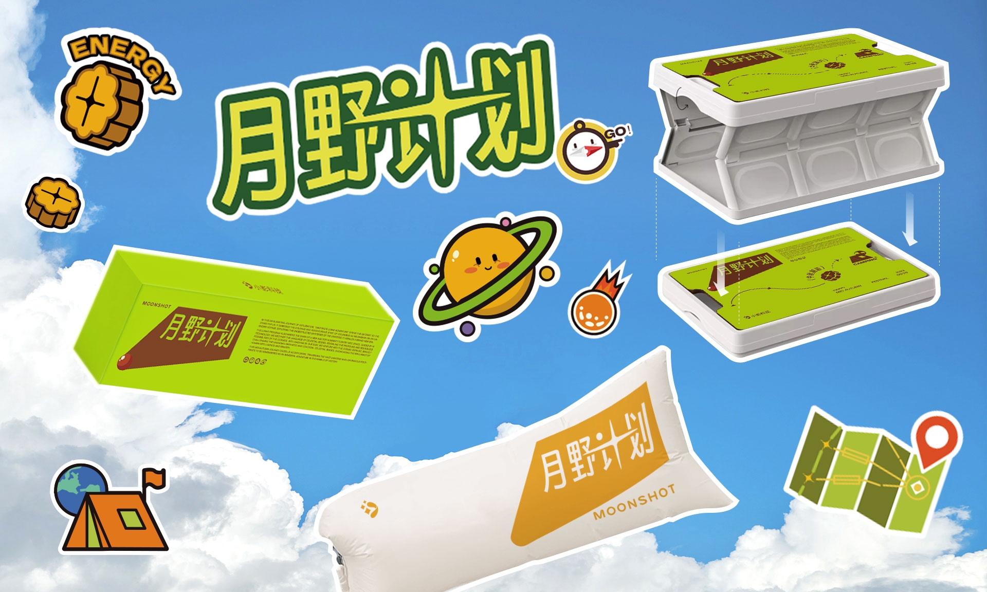 礼盒内含:充气沙发、可折叠多用露营收纳箱、贴纸、祝福贺卡、多种口味的月饼