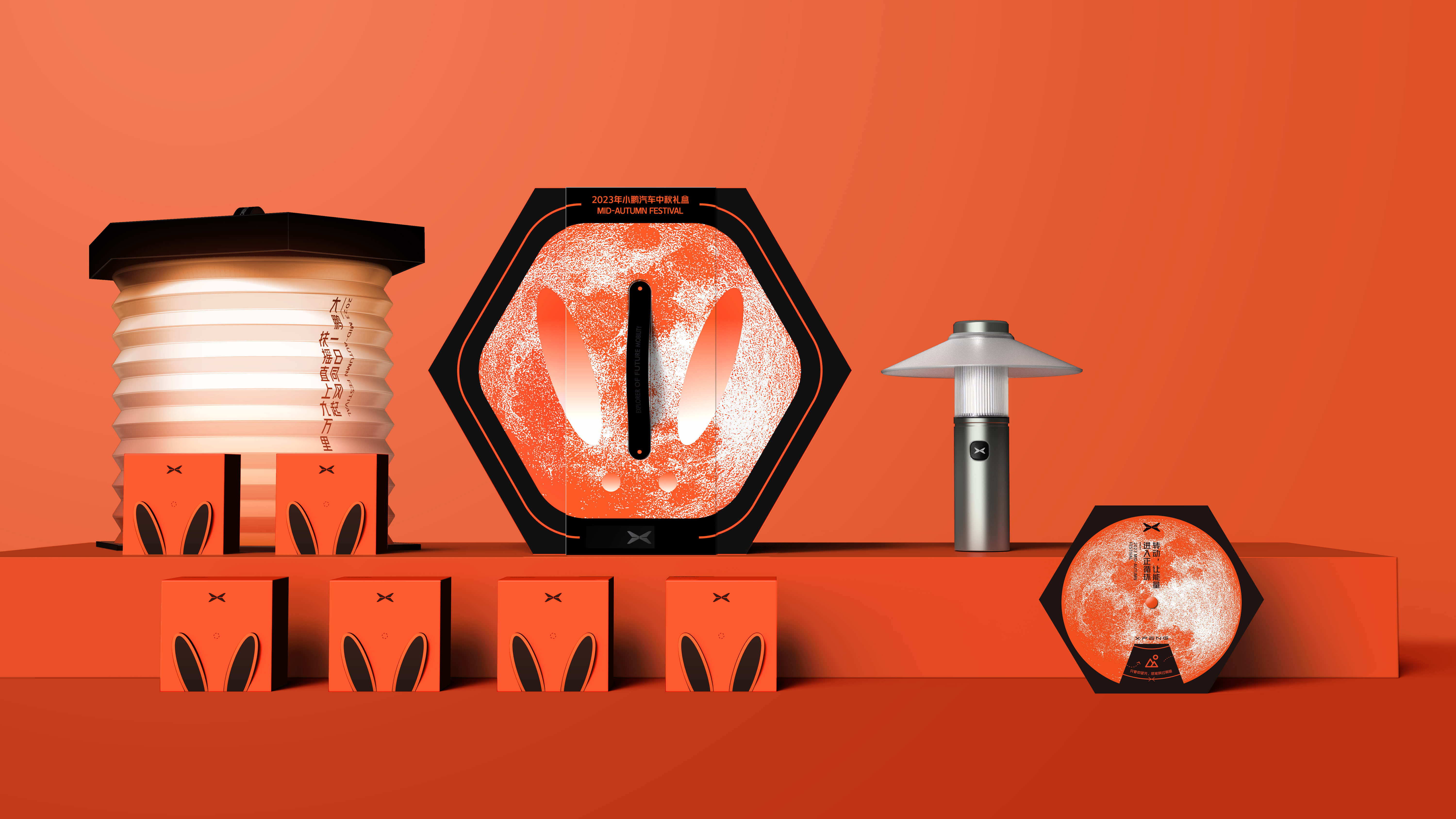 小鹏汽车的中秋礼盒融合传统与新潮,六边形寄寓吉祥如意。