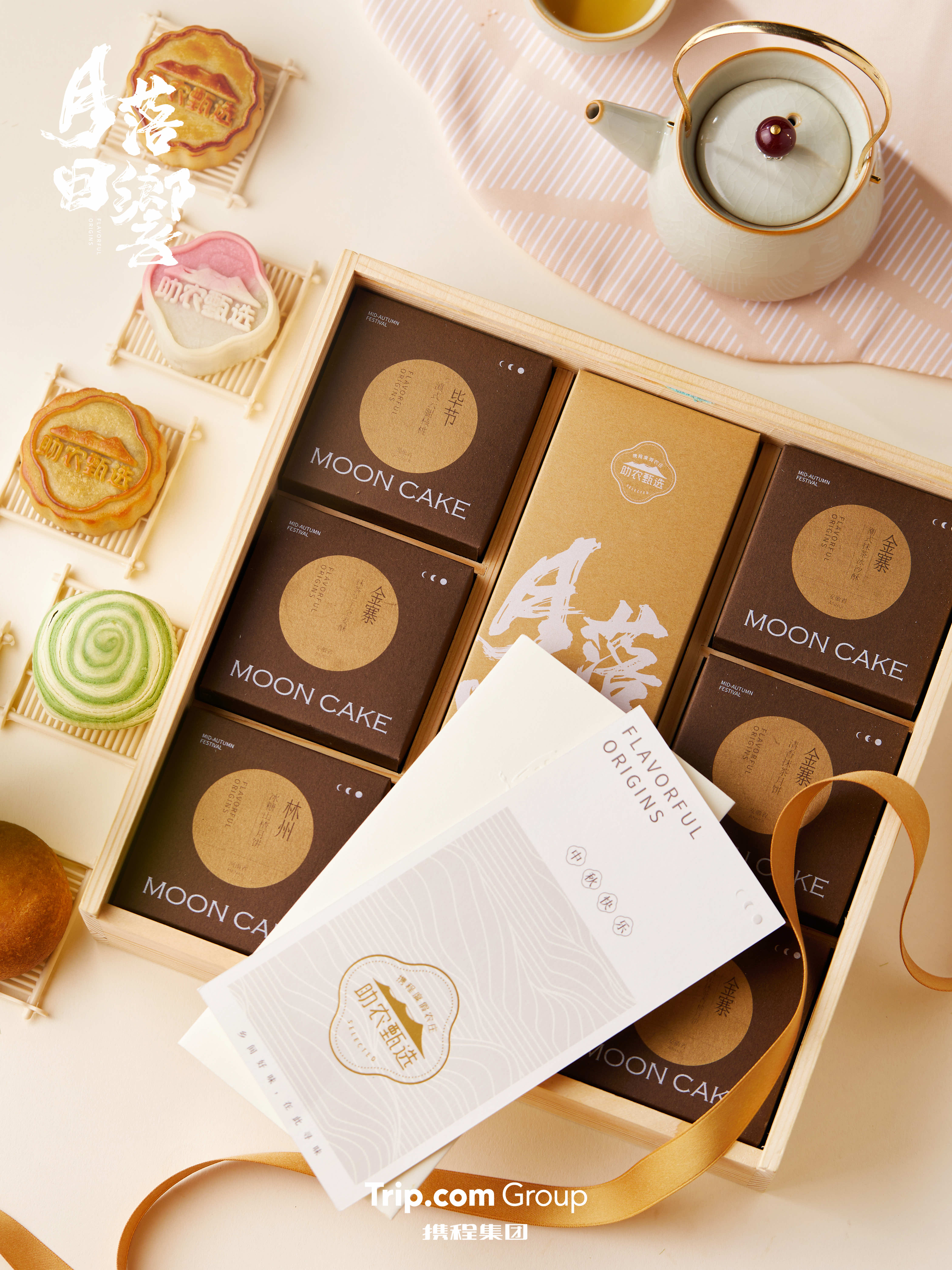 礼盒承载着二十余家携程度假农庄的心意:愿聚食合家酥与饴,千里明月作团圆。