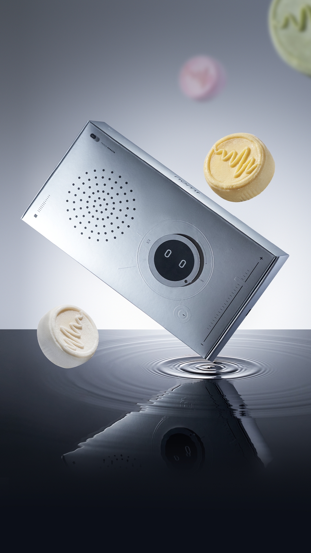 礼盒采用多巴胺配色,外套盒形状如云朵,打开礼盒的动作寓意“守得云开见月明”;礼盒中央的月倒影代表心心相印的“跃”动。月明之下,让多巴胺注入工作生活。愿人们快乐工作,认真生活。