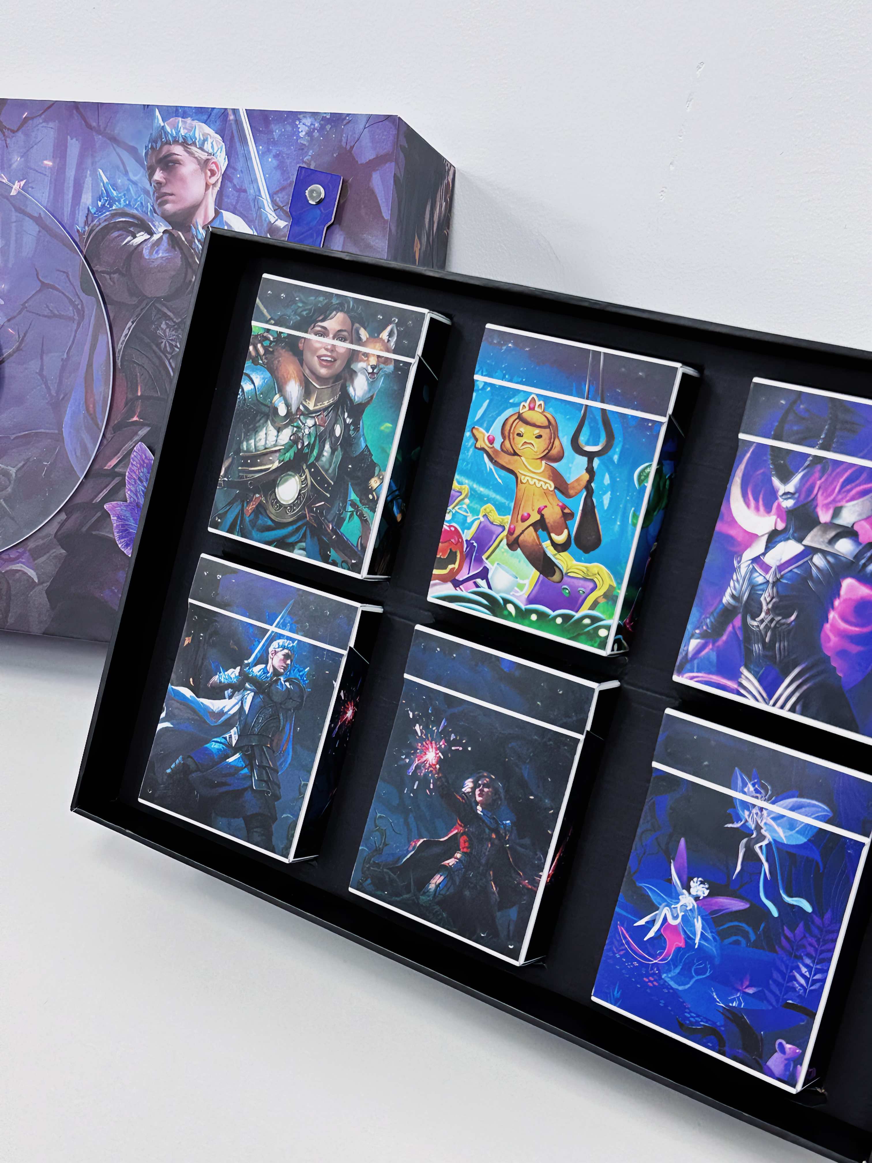 打开礼盒,六个月饼小盒上是六张经典卡面,每个小盒的形状还仿造了万智牌的卡包设计。