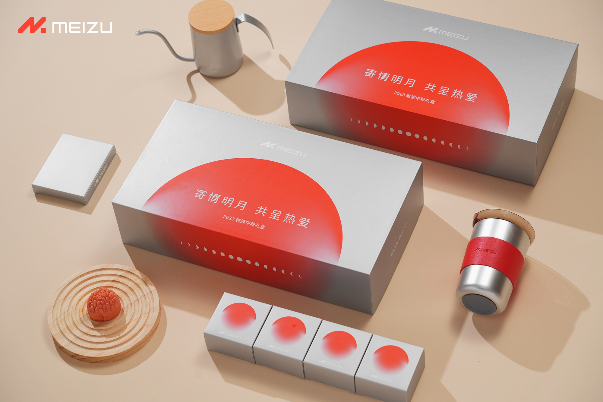 山海皆咫尺,天涯共此时。魅族的中秋礼盒里除了有定制款月饼,还有咖啡杯与水壶。