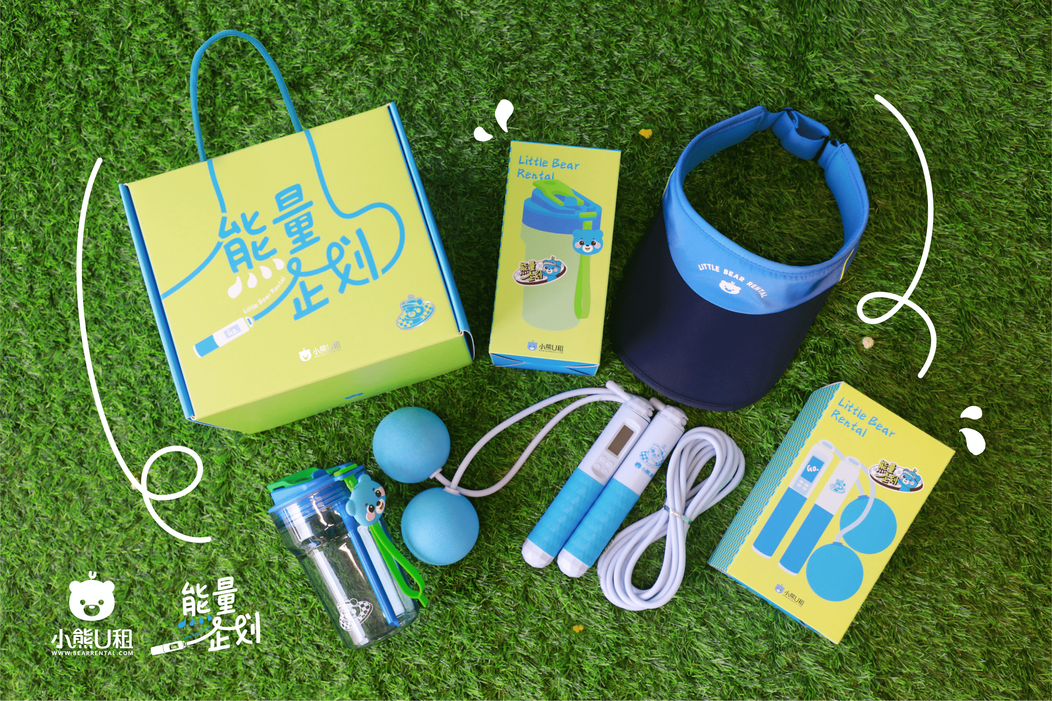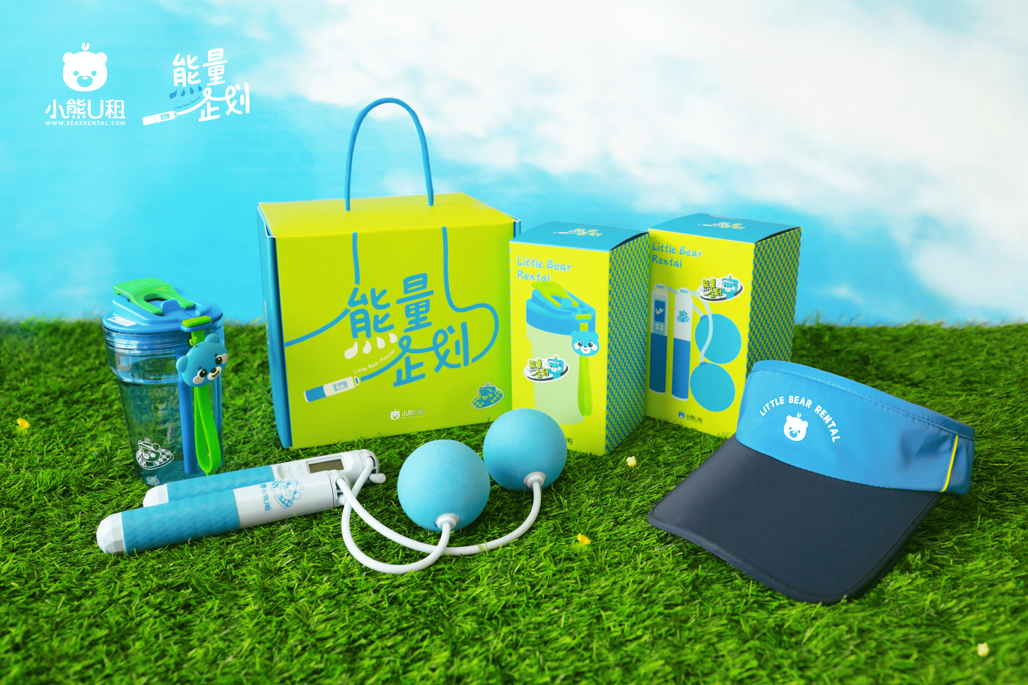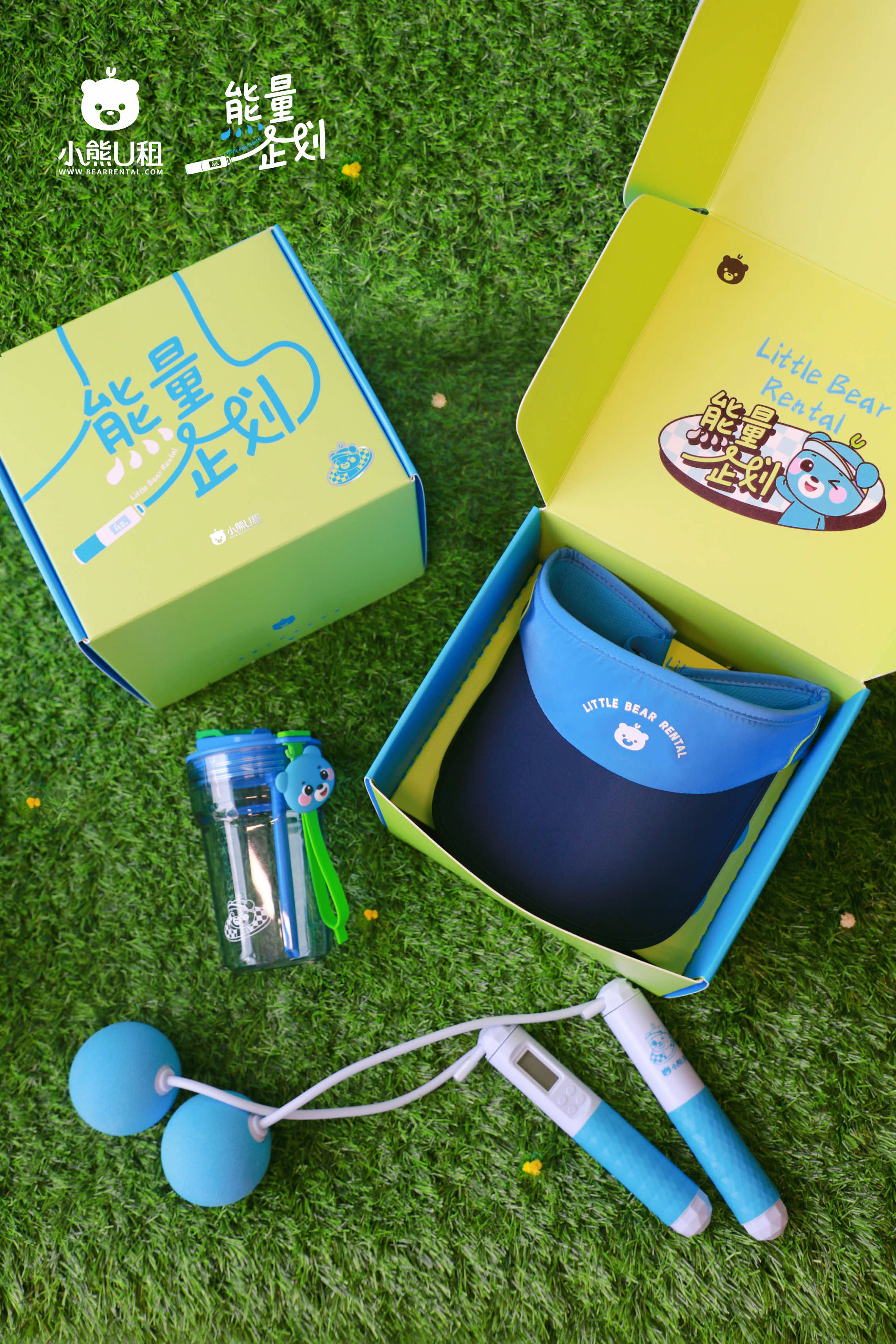 礼盒中有能量绳、能量水杯、能量帽。平时有空就跳一跳锻炼身体,及时补水和防晒,简简单单就能恢复能量~