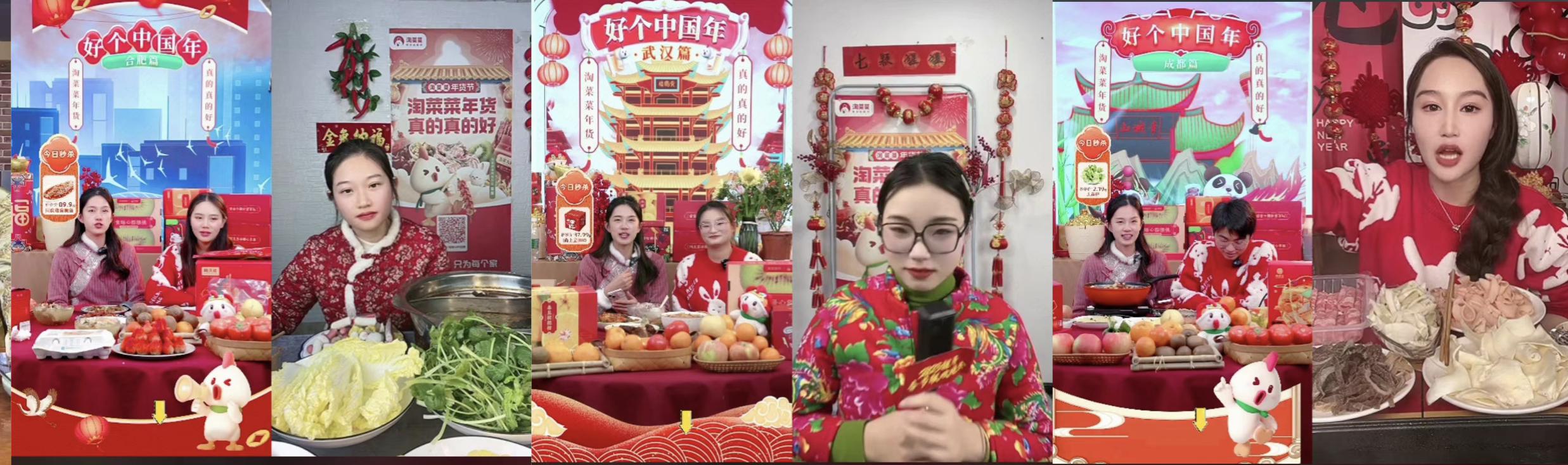 线上,快手在济南、合肥、成都、武汉、广州开设专场达人直播,安徽达人@大山里的远儿,成都达人@芳芳大BOOS等在直播间分享过年习俗和地域美食,以自身流量带动网友在淘宝买菜置办年货。线下,淘宝买菜大篷车不仅在成都、武汉、合肥的地标建筑附近曝光春节活动,更深入市井生活,在居民区打爆品牌优势。