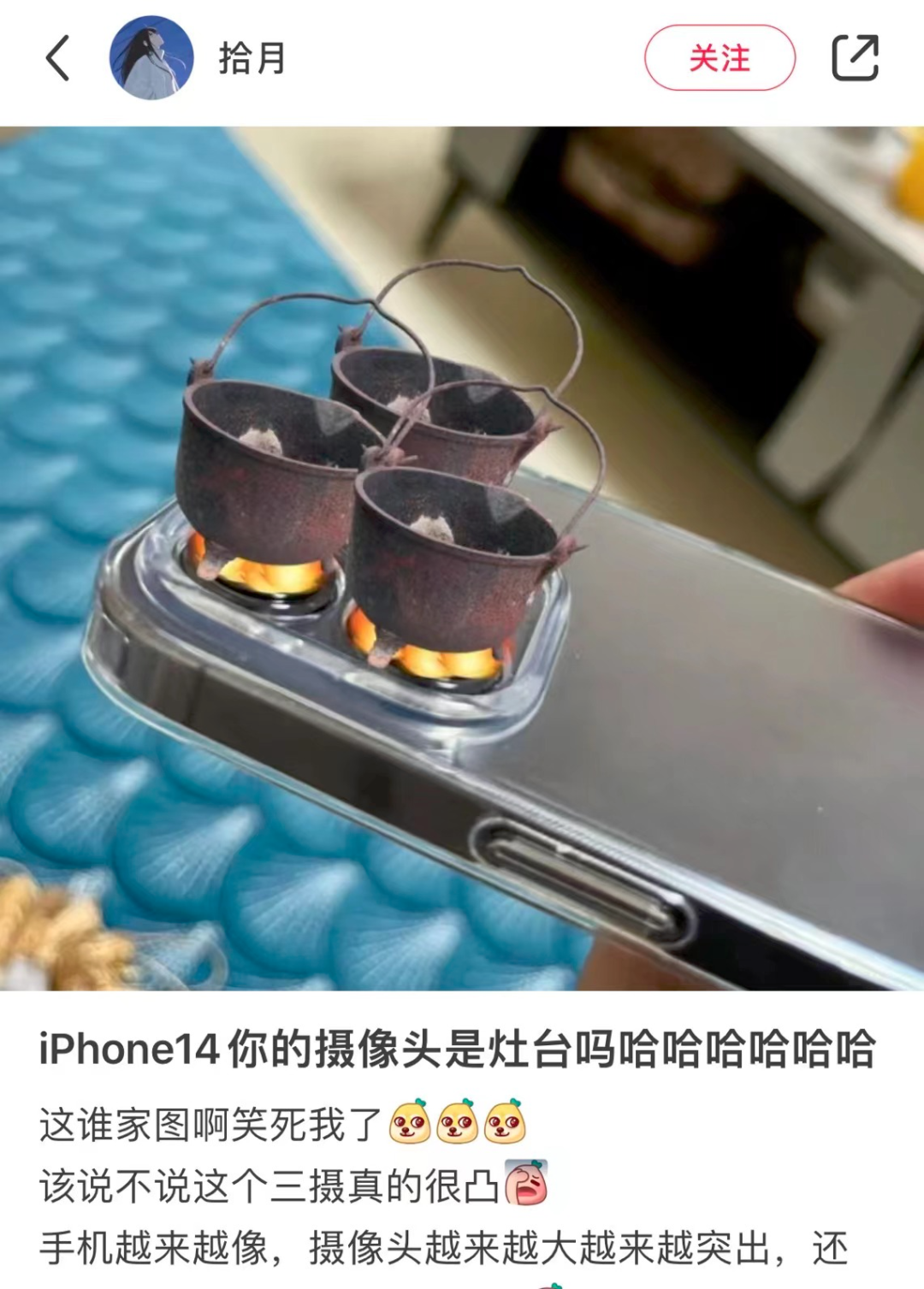 其实早在去年,苹果升级手机摄像头的时候,就被网友吐槽过摄像头之厚,镜头数量之多,像煤气灶一样。