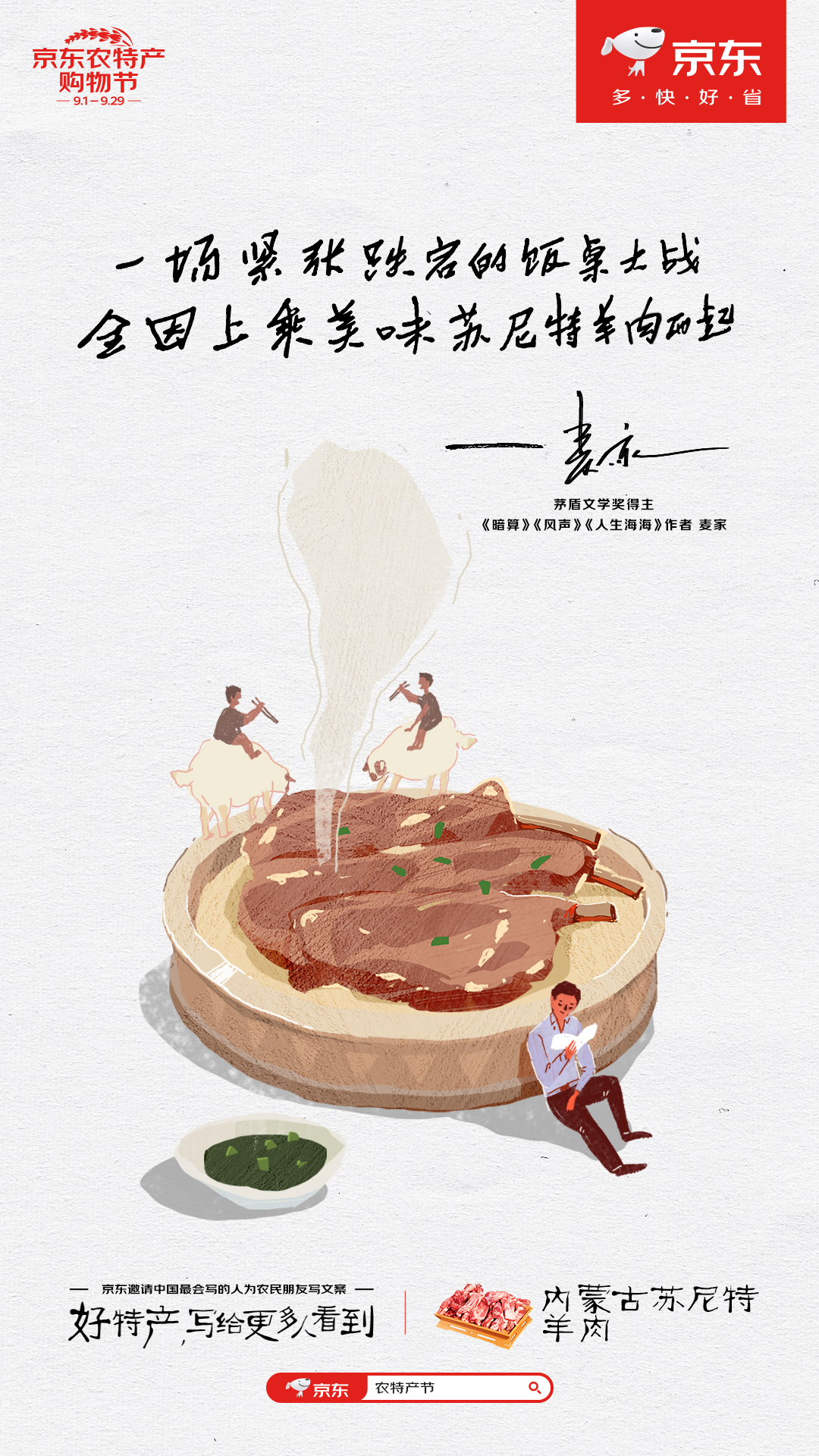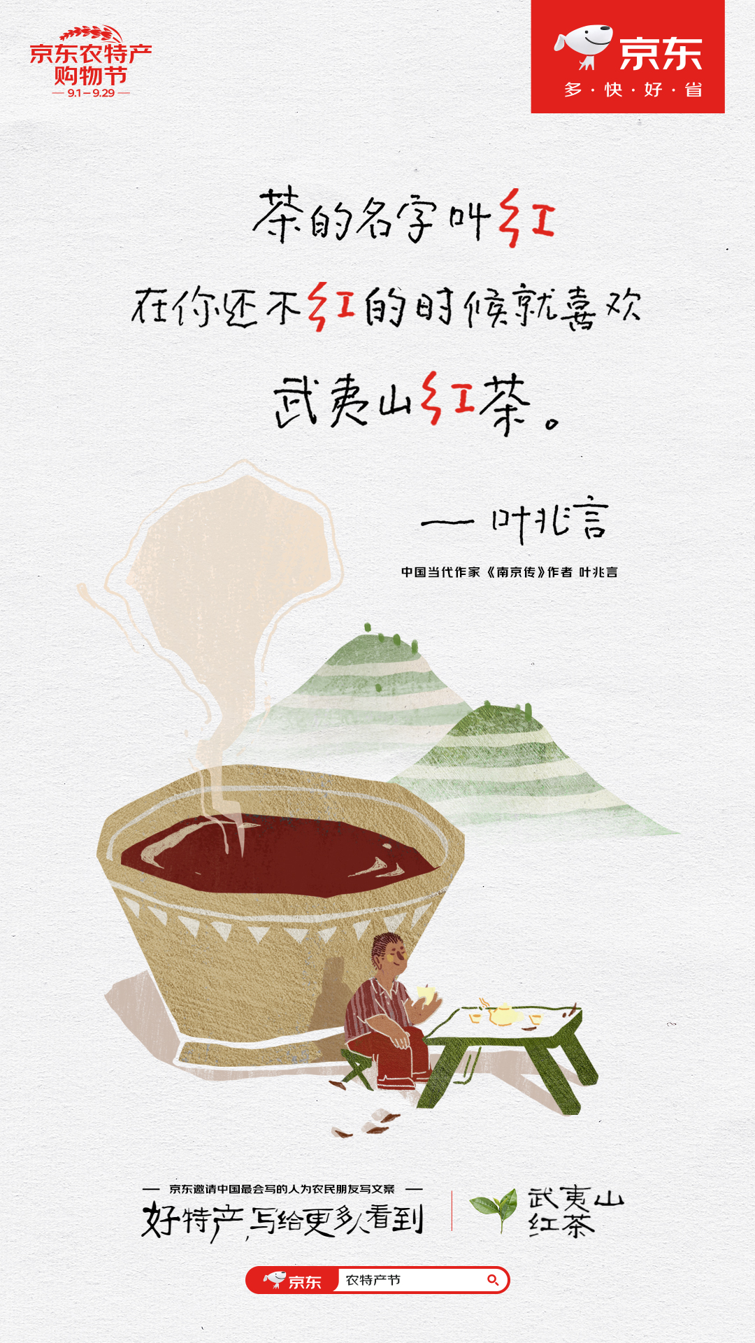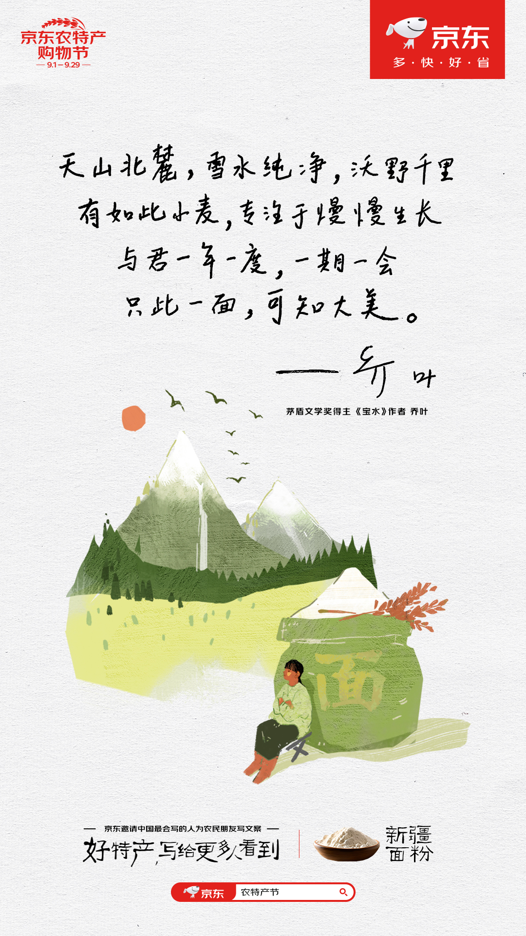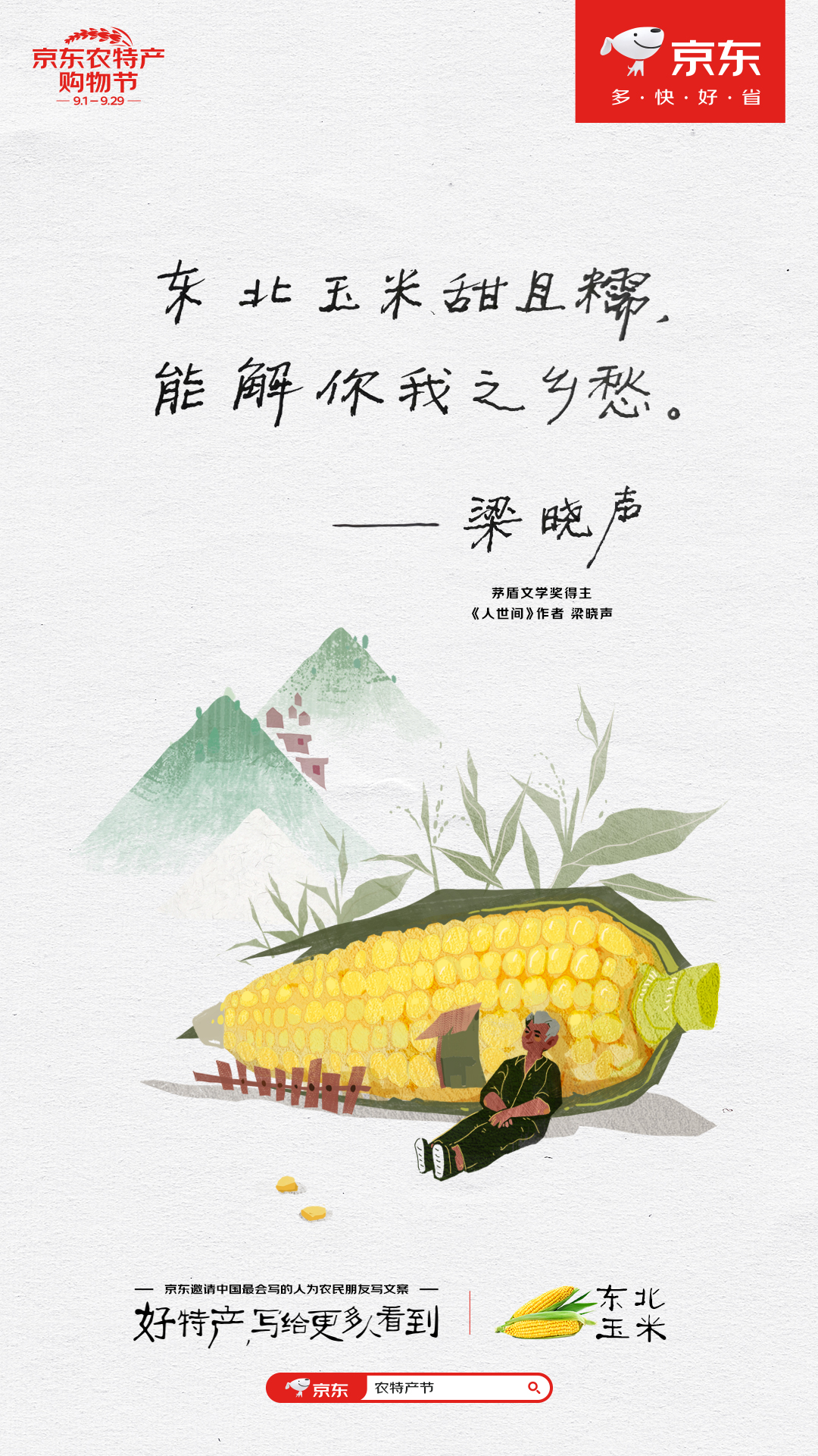 京东为给“农特产购物节”打广告,找来了很会写的作家们,为农民、农产品写文案。丰收大片洋溢着人文气息,跨界合作带来了新鲜感。