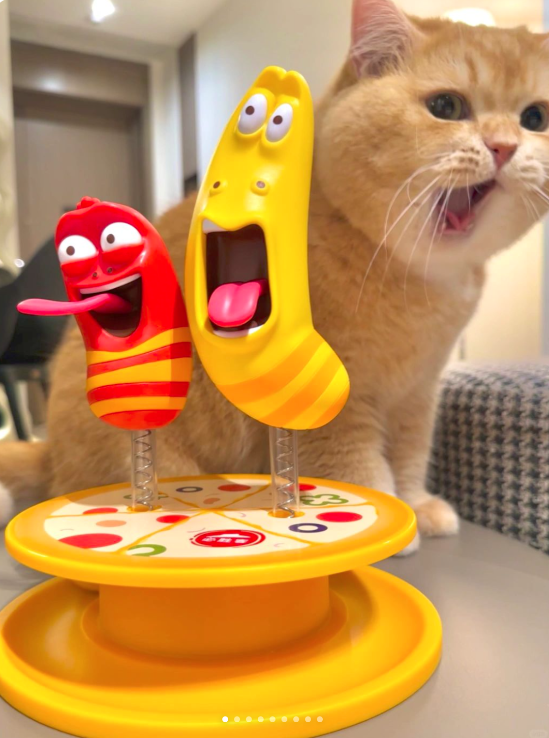 同时,必胜客与韩国搞笑动画片《爆笑虫子》IP联名推出玩具。周边围绕动画片的两位主角制作,一只是整天乐呵、憨厚的黄色小虫子,另一只是古灵精怪的红色小虫子。必胜客不仅推出了贪吃虫毛毯、“抓不住的虫子”玩具,还为毛孩子们打造了一款“宠物转盘”。