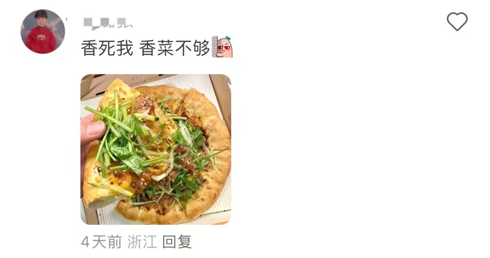 就像当初白象方便面推出香菜方便面,麦当劳推出香菜冰淇淋一样,香菜披萨一上市,就吸引了不少“香菜脑袋”前去打卡品尝。这种极具争议性和话题点的食材,自然也引得不少博主自发测评分享。