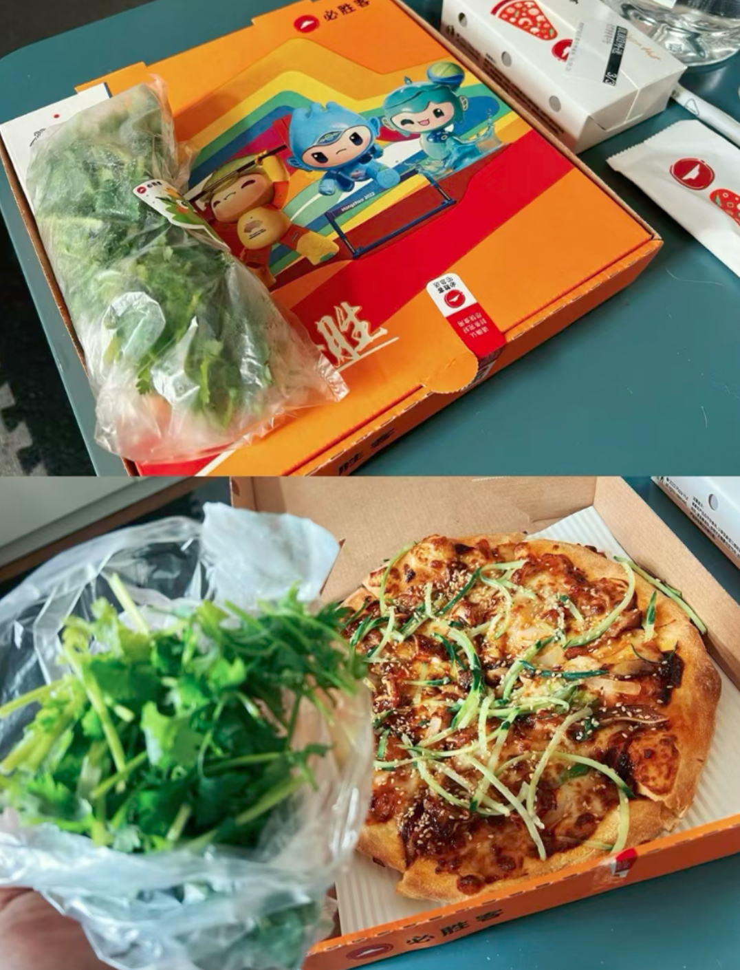 网友晒图外卖送达的香菜披萨,“满满的香菜”是单独用保鲜袋装的。商家的做法挺贴心,关于吃香菜这件事,各位量力而行就好。