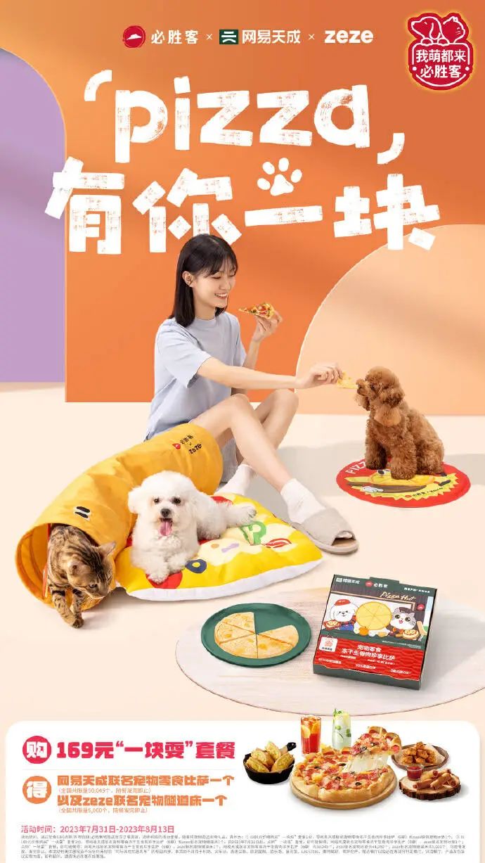 其实这是双方的第二次合作。今年8月上旬,必胜客,zeze,还有网易天成三方就曾合作推出了冻干披萨、宠物隧道床和宠物冰垫。