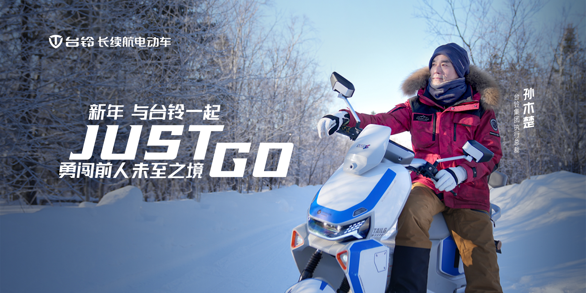 1月1日晚19:00-22:00,在北纬47度冰雪秘境伊春,台铃集团执行总裁孙木楚,与全球4500万用户及合作伙伴直播面对面,共叙热烈向前的人生每一公里。