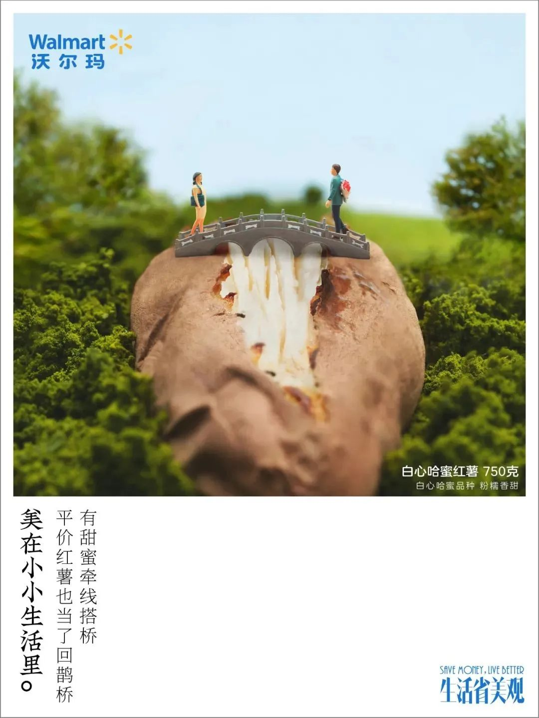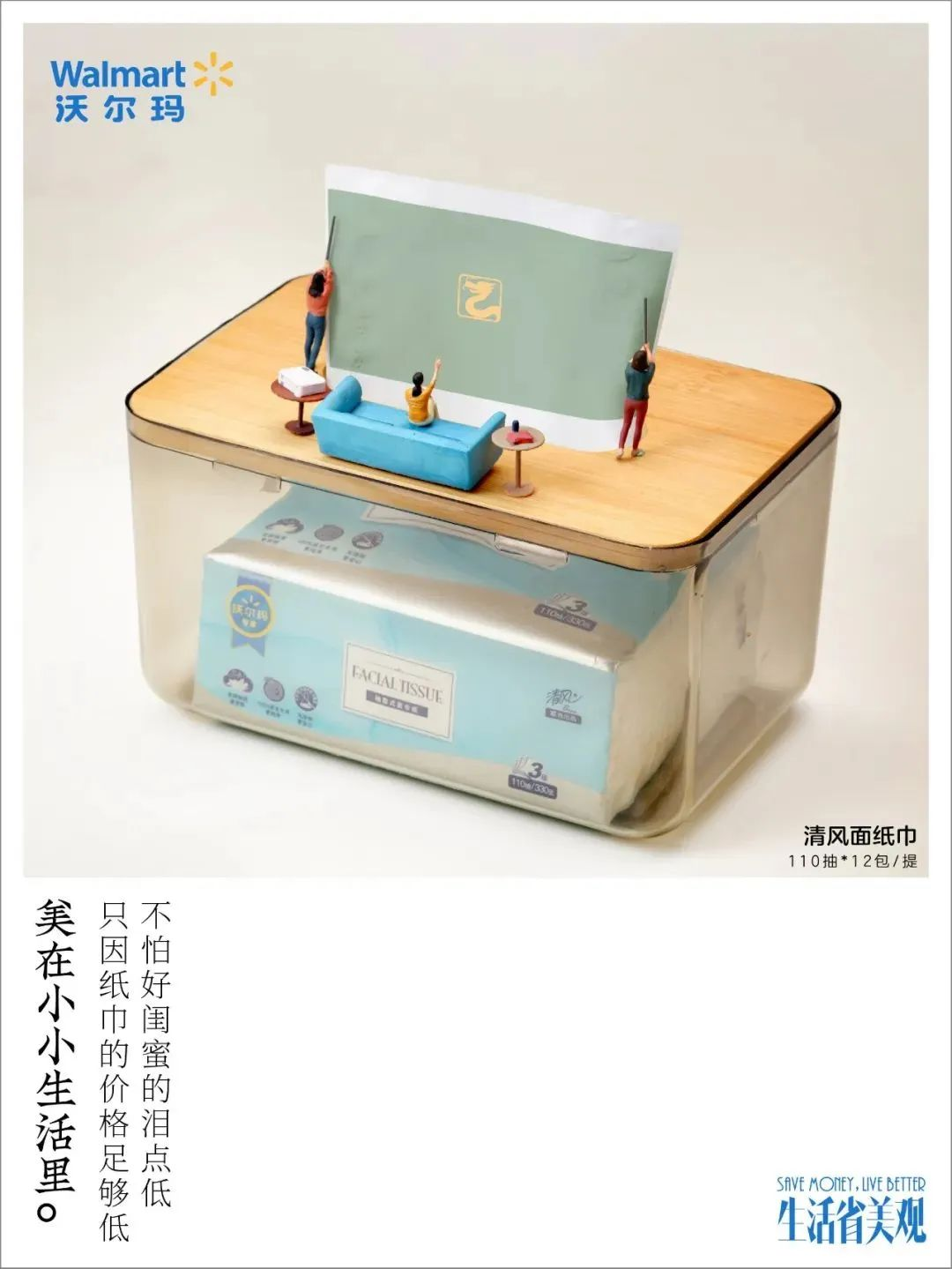 大润发“烟火文学”开展地如火如荼,其他超市也没闲着。这不,沃尔玛推出一组以「生活省美观」为主题的海报文案。