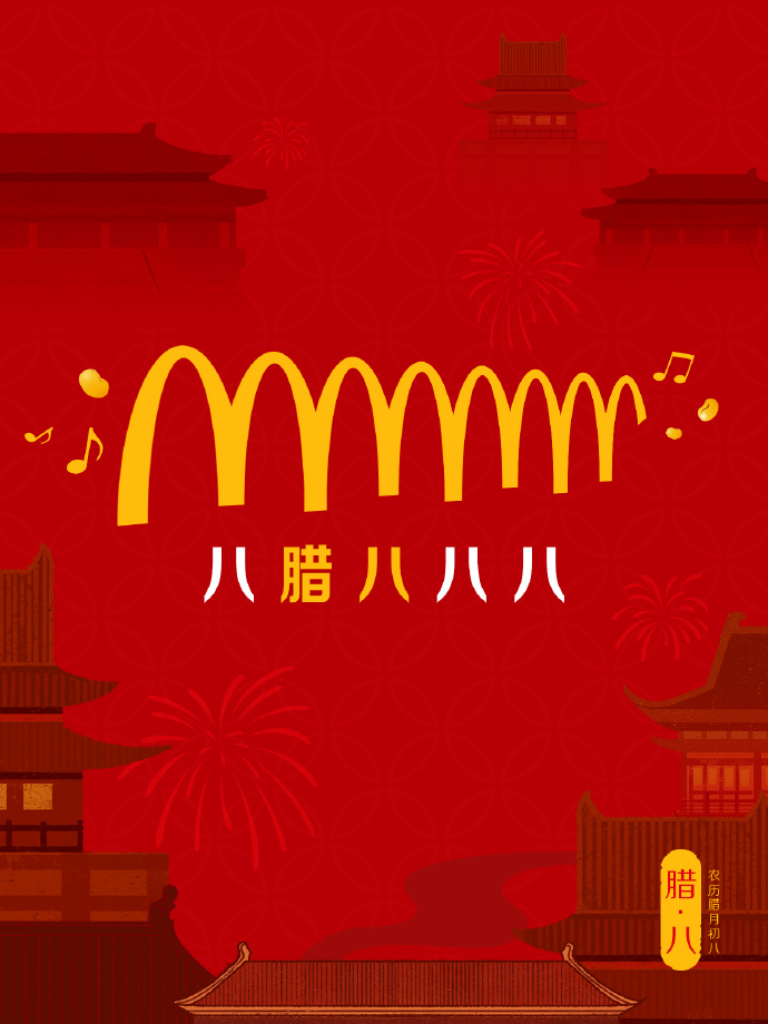 海报中“八腊八八八”的文案,在logo元素的配合下,自带音效功能。此时无声胜有声,让人会心一笑的同时,不自觉带入麦门门店经典音效,创造正面品牌联想。