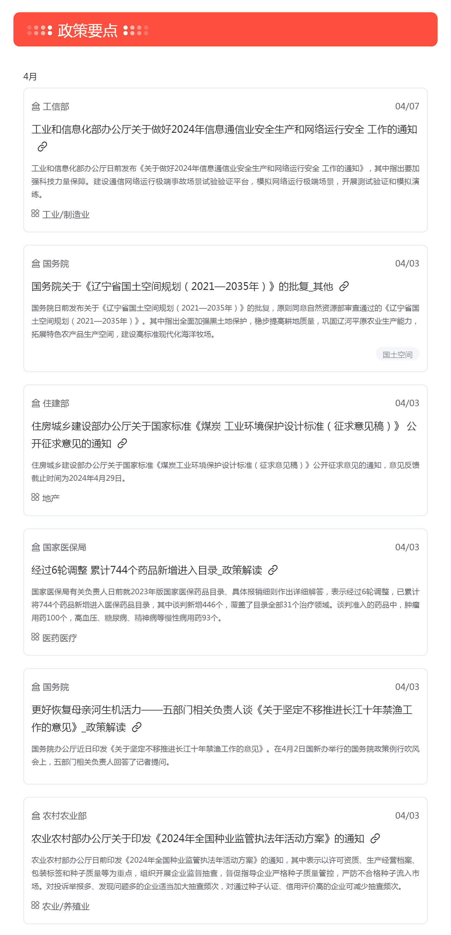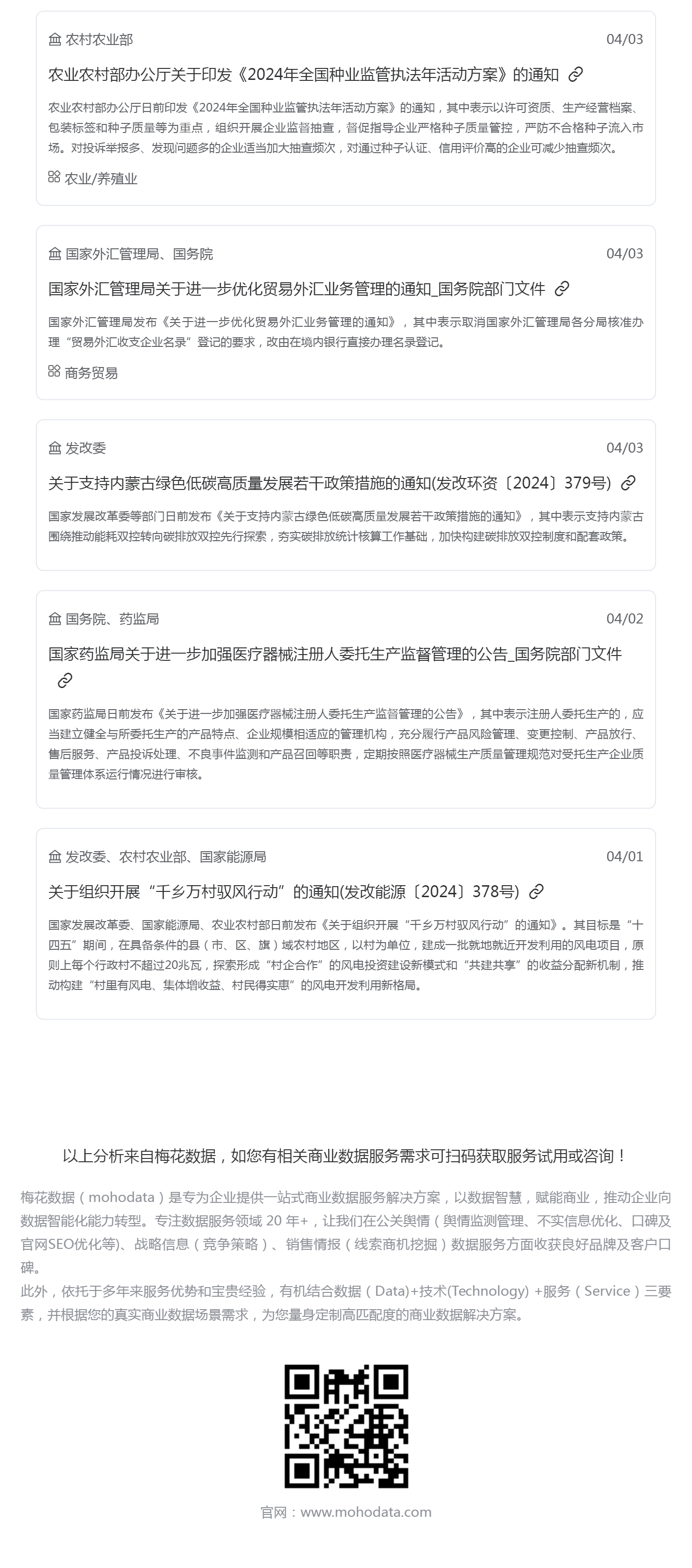 根据梅花数据舆情监测要政盘点统计,监测期间共收录重要政策信息共计75条,其中涉及医疗、能源、外汇、低碳等多个领域,建议重点关注《关于进一步加强医疗器械注册人委托生产监督管理的公告》、《关于进一步优化贸易外汇业务管理的通知》等政策。