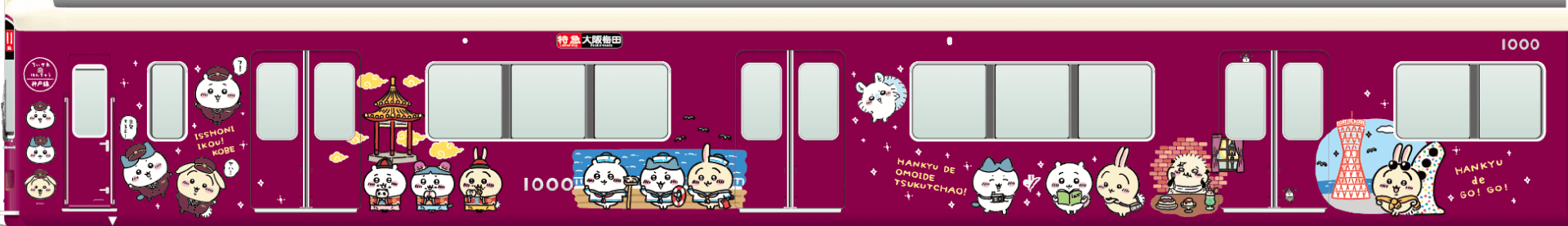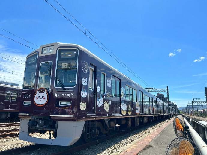 去年8月,阪急电车与Chiikawa开启大型合作,三条联动线路分别为宝冢线「吉伊号」、神户线「小八号」和京都线「乌萨奇号」。Chiikawa三小只的身影无处不在,车头、车窗、驾驶室、站台都贴上了三小只,单日乘车券、文明乘车小贴士等都因为联名重新设计。