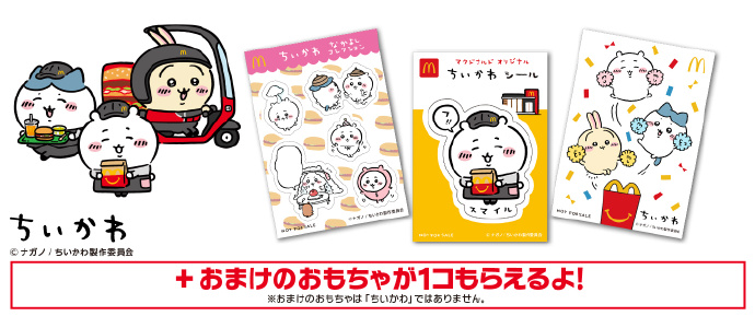 去年9月1日,日本麦当劳联动Chiikawa,儿童乐园餐中附赠Chiikawa盲盒贴纸,盲盒共五款,每一款含三张贴纸。三小只化身麦记店员,呆萌可爱。许多中国粉丝表示羡慕极了,建议金拱门也来一次。
