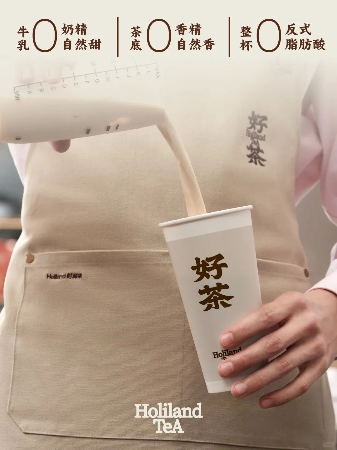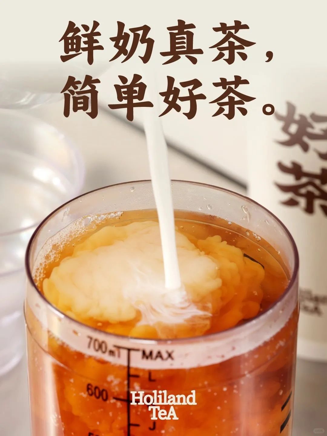 据官方介绍,奶茶用料简单,宣传图上写着“鲜奶真茶”,茶底0香精,牛乳0奶精,整杯0反式脂肪酸,看上去比较贴合当下年轻人对健康饮品的要求。