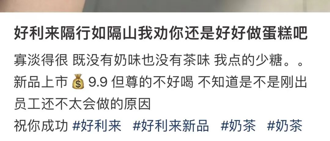 然而,当下现制饮品竞争激烈,纷纷卷原料、卷价格,不知好利来的奶茶之路能否持续走下去呢。
