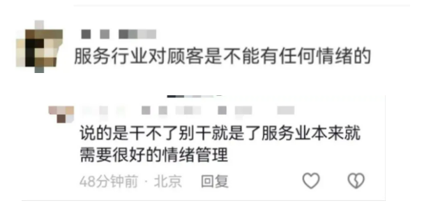 也有网友表示理解并同情打工人,有些顾客就是很难缠,“动不动把投诉挂嘴上”会让人很崩溃,“顾客就是上帝”也不代表服务业就低人一等。