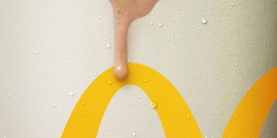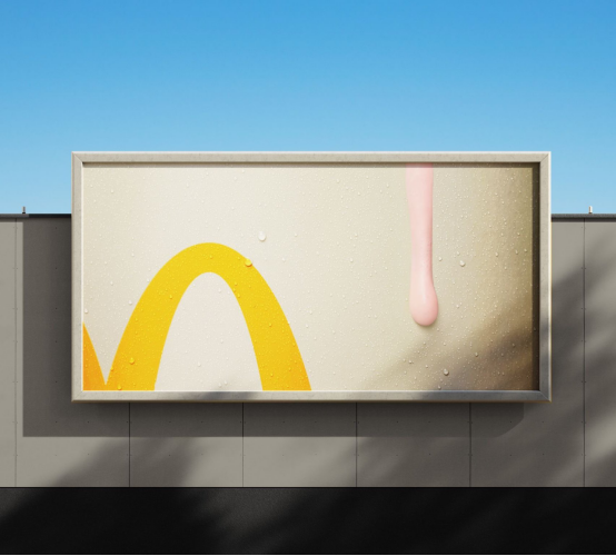 一如既往的极简设计,一滴在“汗”里缓缓流淌的奶昔,配合麦当劳的“金拱门”标志,将酷暑的炎热与人们想喝到清凉饮品的心情展现得淋漓尽致,同时令人印象深刻!