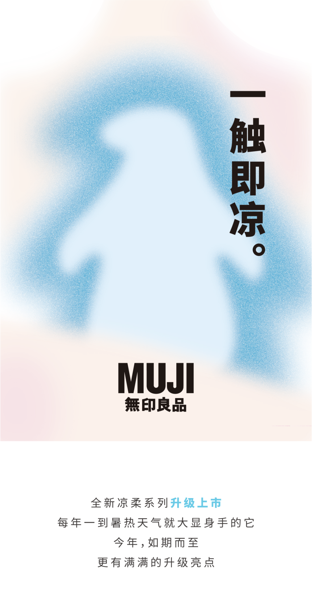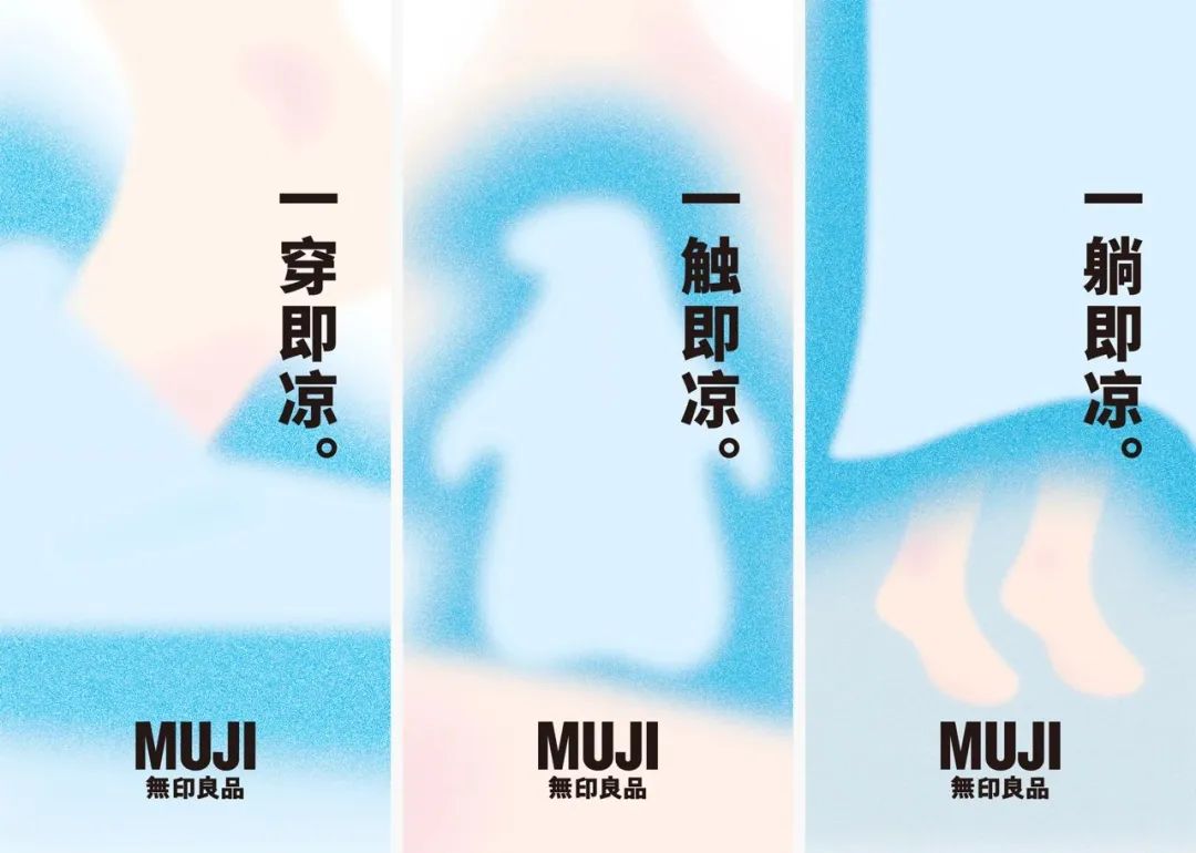 同样秉持简约设计的还有MUJI,今年凉柔系列海报沿用了去年原研哉的设计概念,以“清凉”的颜色、模糊的图像体现出产品的清凉舒适。