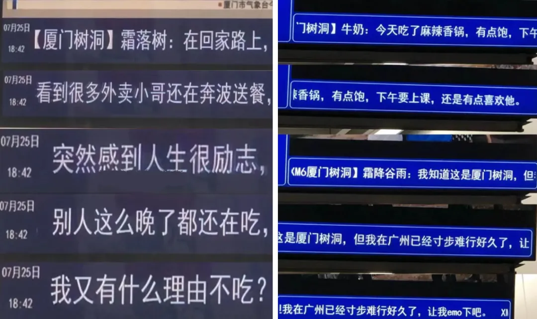如果说杭州地铁的投稿内容是语言质朴、情感浓烈,那厦门地铁的树洞则是以幽默的吐槽表达情绪、缓解压力、引发共鸣。