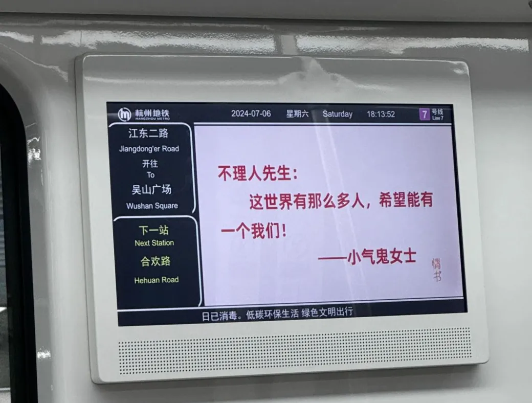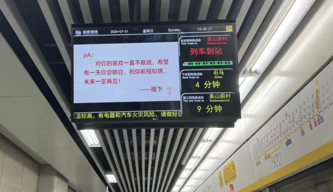 杭州地铁,则是把学生时代的“告白墙”,重新搬上了电子屏幕: