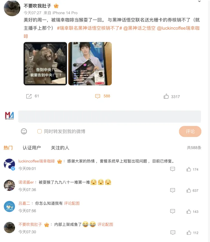 刷屏联名还是营销翻车,瑞幸 ×《黑神话悟空》上线首日惹争议